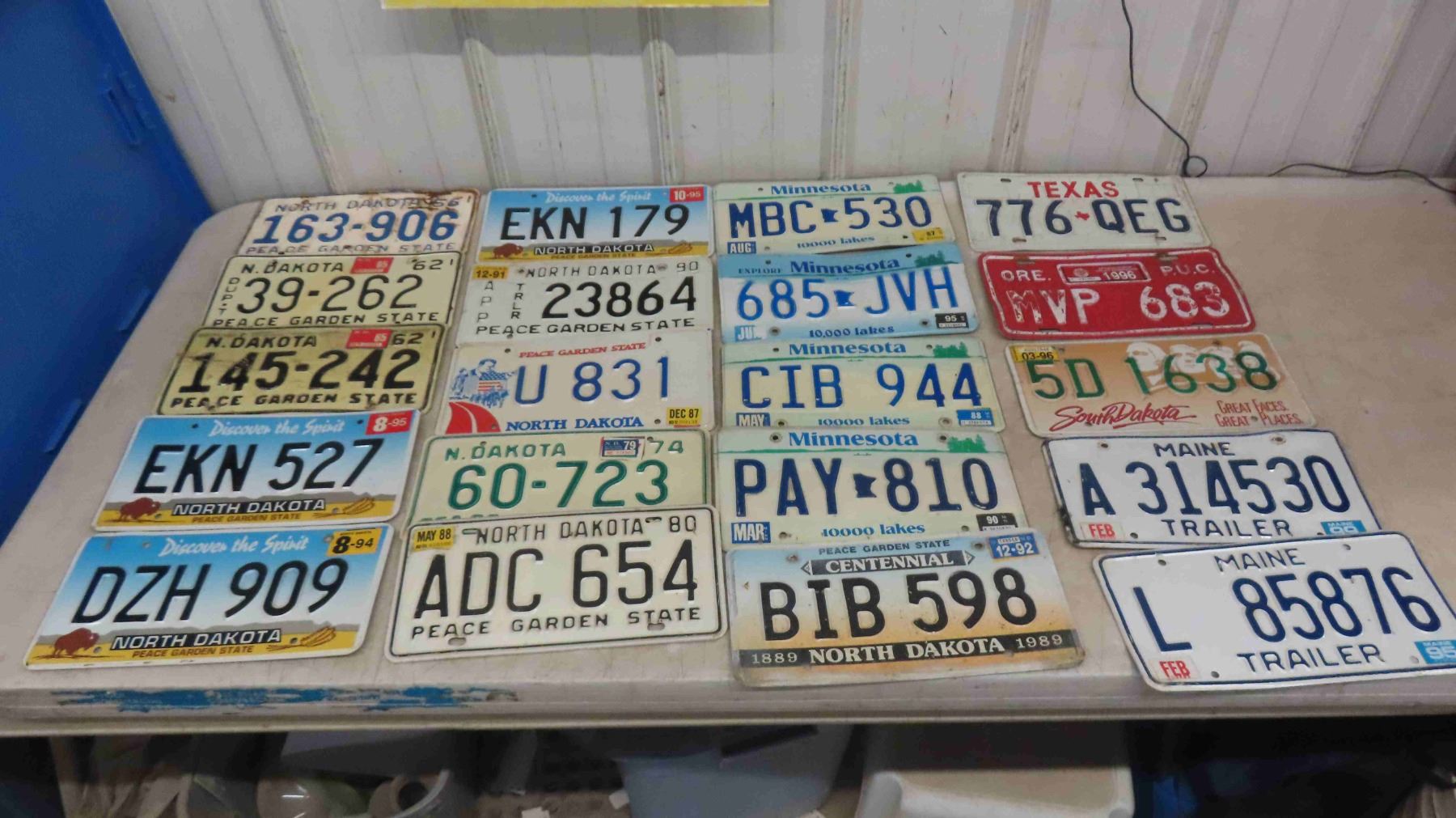 20 American License Plates 1950s-90s : Texas, North Dakota, Minnesota, South Dakota , 2 Marine Trailer Plates