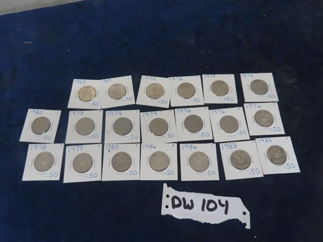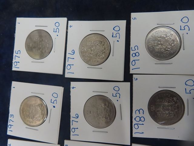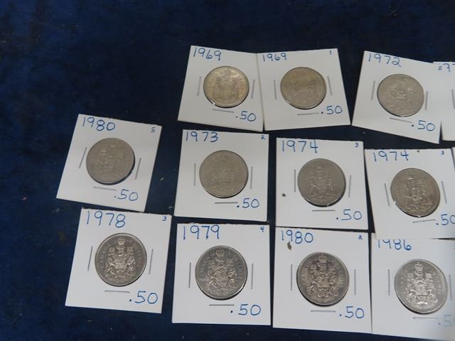 20 Canadian 50 Cent Coins - 1969 - 1985 - Last Picture shows the Years