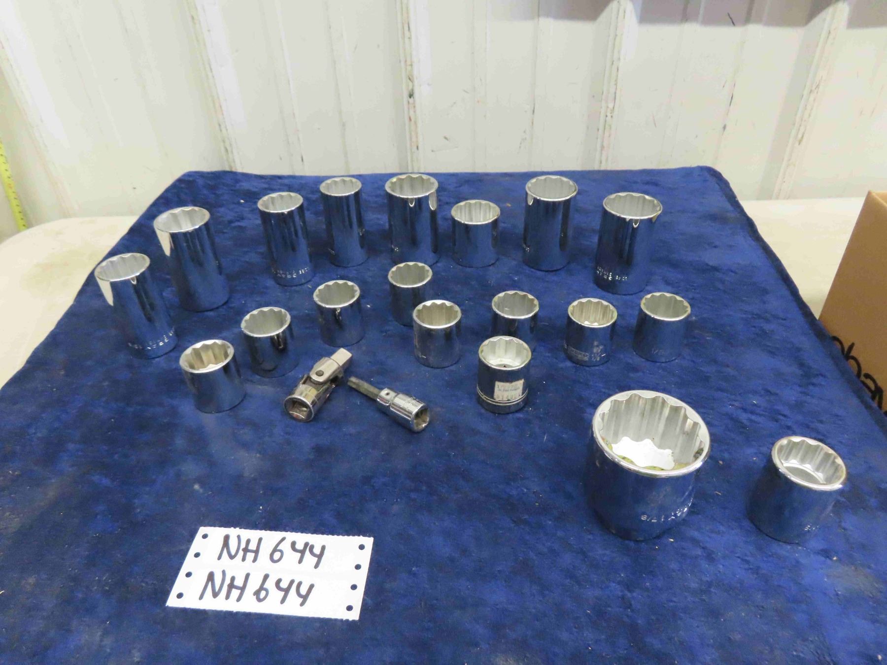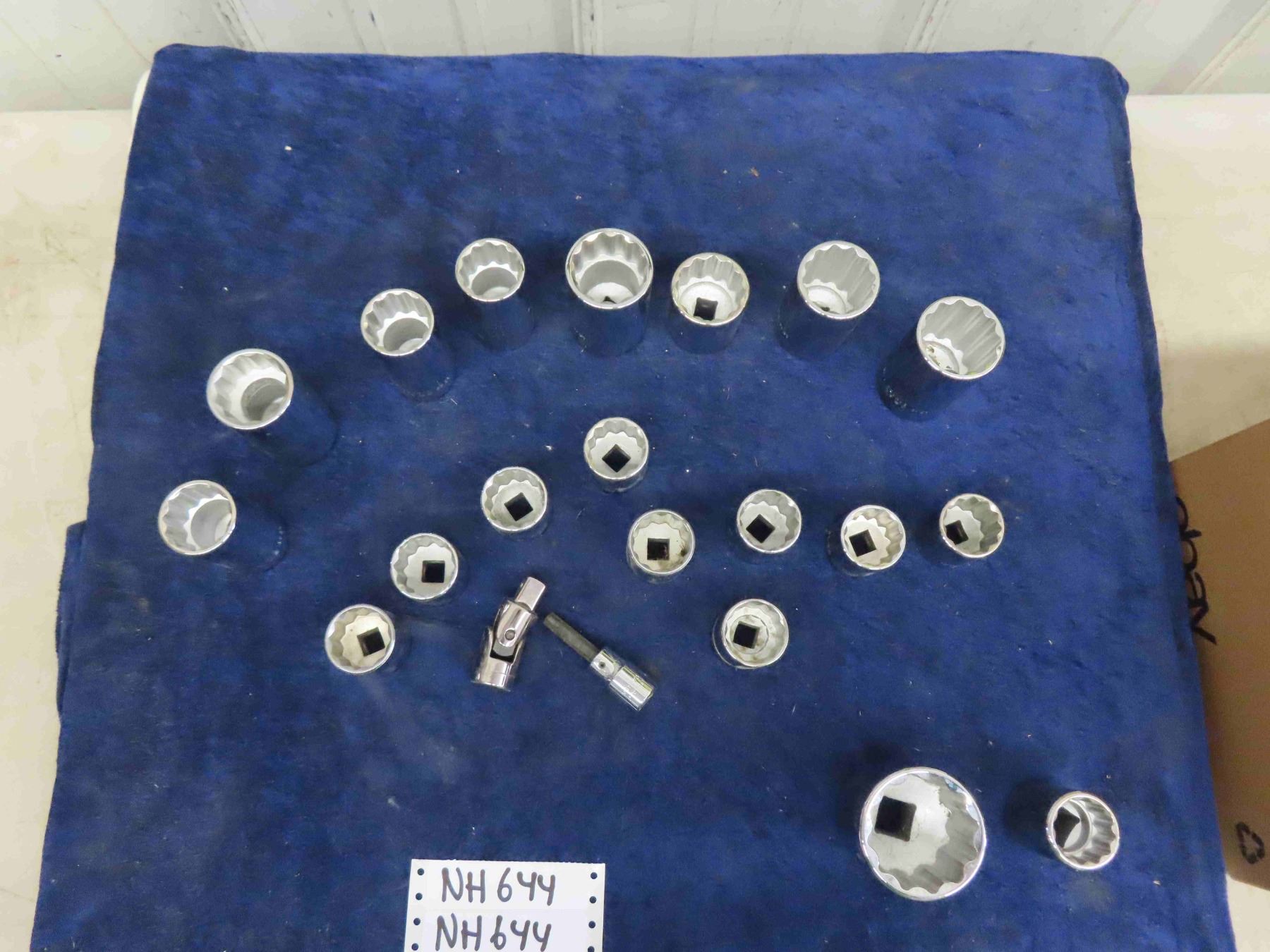 20 Various Sockets : (2) 3/4  drive, (18) 1/2  drive - Assorted Sizes - Deep + Shallow