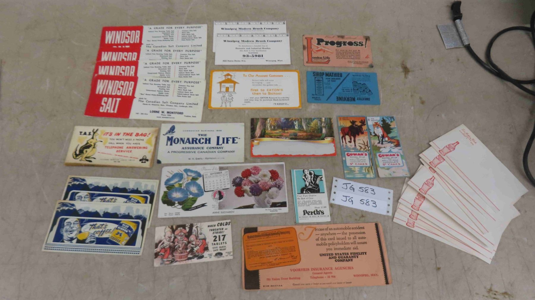 20 Vintage Blotters Including Winnipeg Modern Brush Company on Notre Dame, Windsor Salt, Perths, T. Eaton Co, Blue Ribbon Coffee, Plus (9) Zero Bottling Works Envelopes