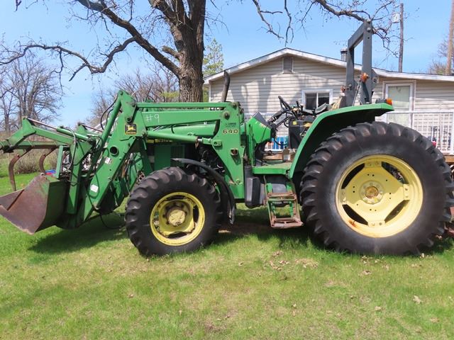 2000 John Deere 6310 Tractor with Mechanical Front Wheel Assist, 16 Speed Power Shift, Dual Hydraulics, 3 Point Hitch, 540 PTO, 18.4R-34 Rear Tires, 14.9-24 Front Tires; Hours 6489 , Serial Number ___________ : Sold with John Deere 640 Self Levelling Front End Loader with 7' Bucket and Grapple