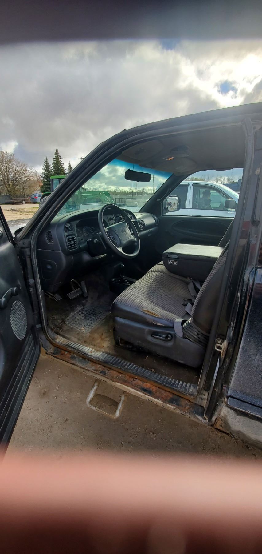 2001 Dodge Ram 1500 Quad Cab 8 Cyl Black w TOD - w 4 Brand New 265/70/16 Tires, (only 75 KMS on them) 200917 KMS, Runs great. Changed front drive Shaft, replaced right front door, Good Windshield, Antitheft System from MPI, changed rear diff Fluid. Interior Needs work. Truck located at McSherry Auction Yard Stonewall, MB