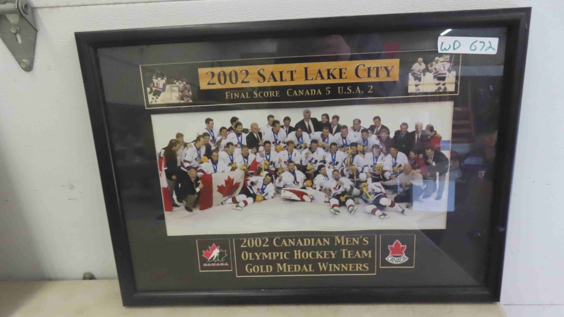 2002 Canada USA Hockey Olympic Framed Photo 19" x 27"