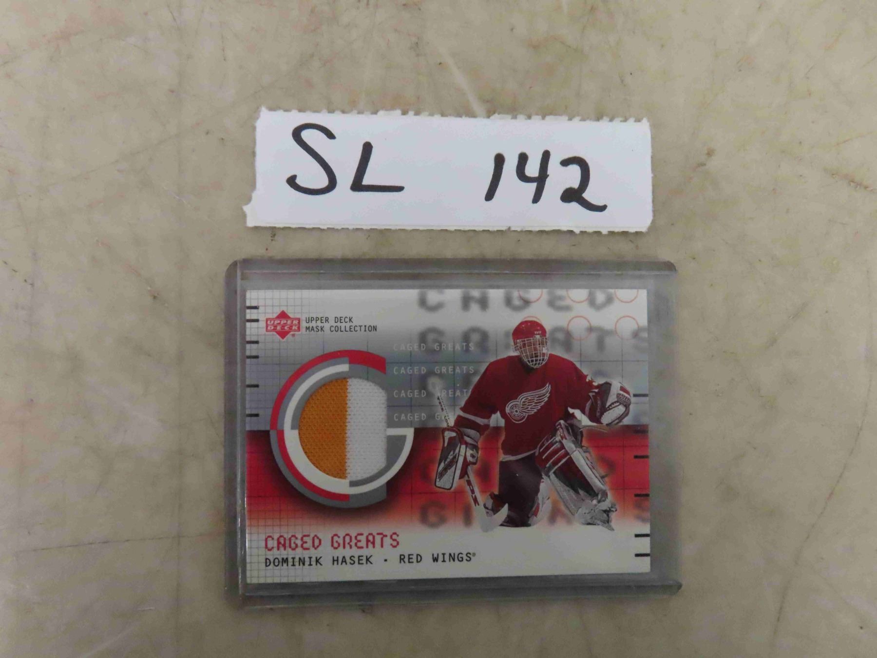 2002 UD Dominik Hasek Gaged Greats Authentic Game Worn Jersey Card