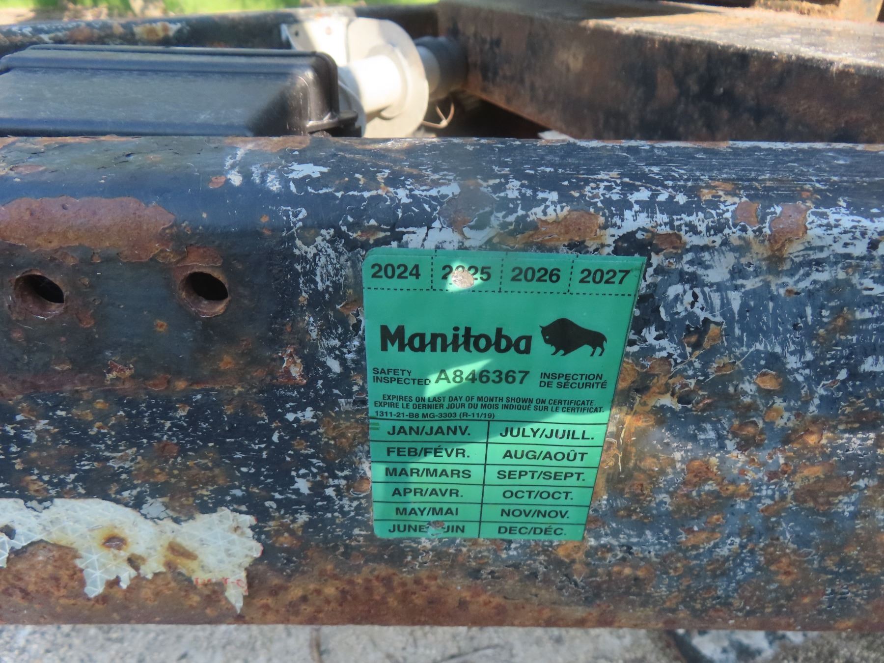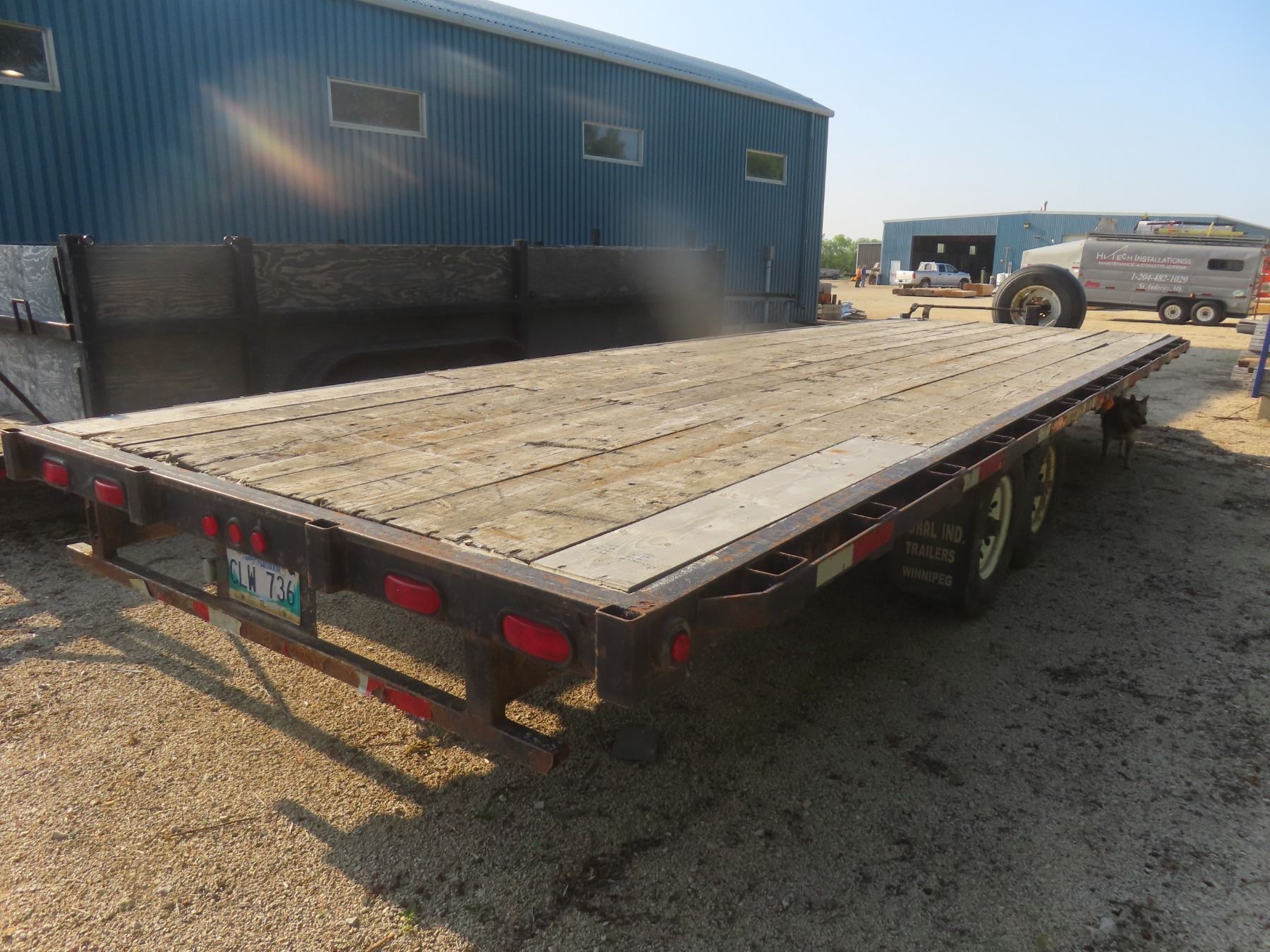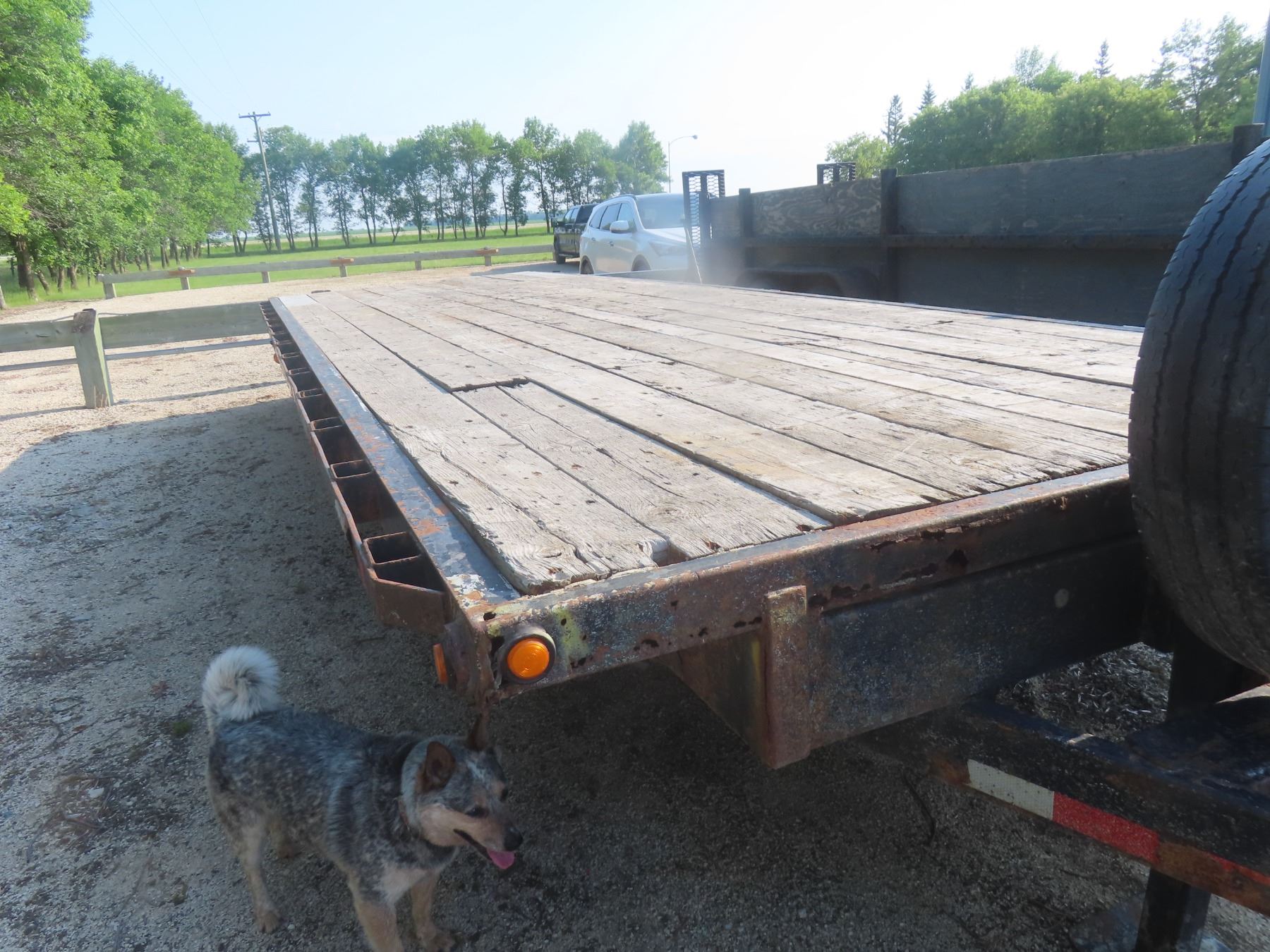 2003 Sokal Bumperhitch 25ft Flatdeck Trailer with (2)x 7000lbs Axles. Stake Pockets, Tie Down Strapping & Comes with a Spare. Has Existing Safety But Expires End of June2025. Has TOD.