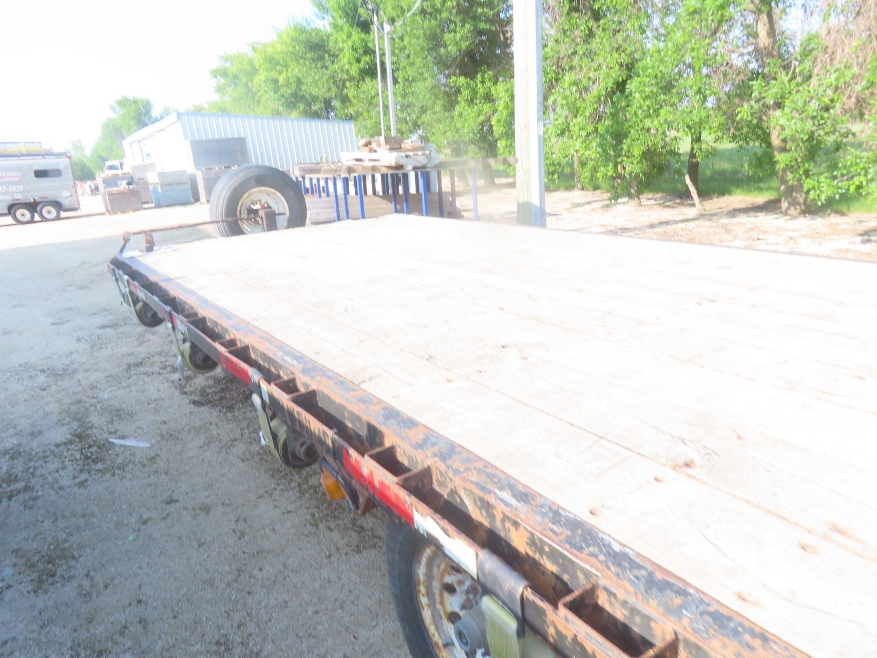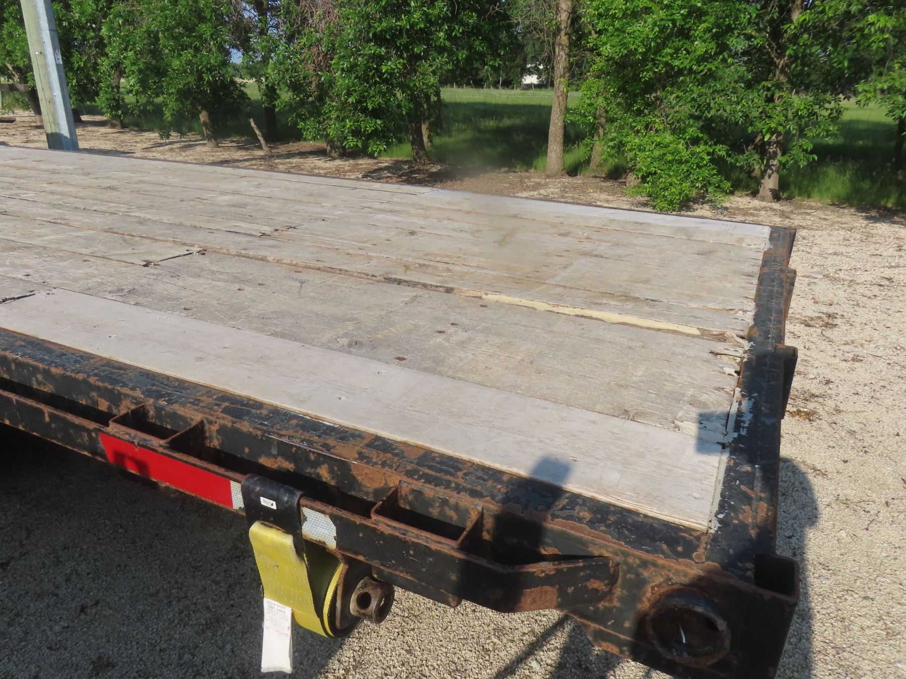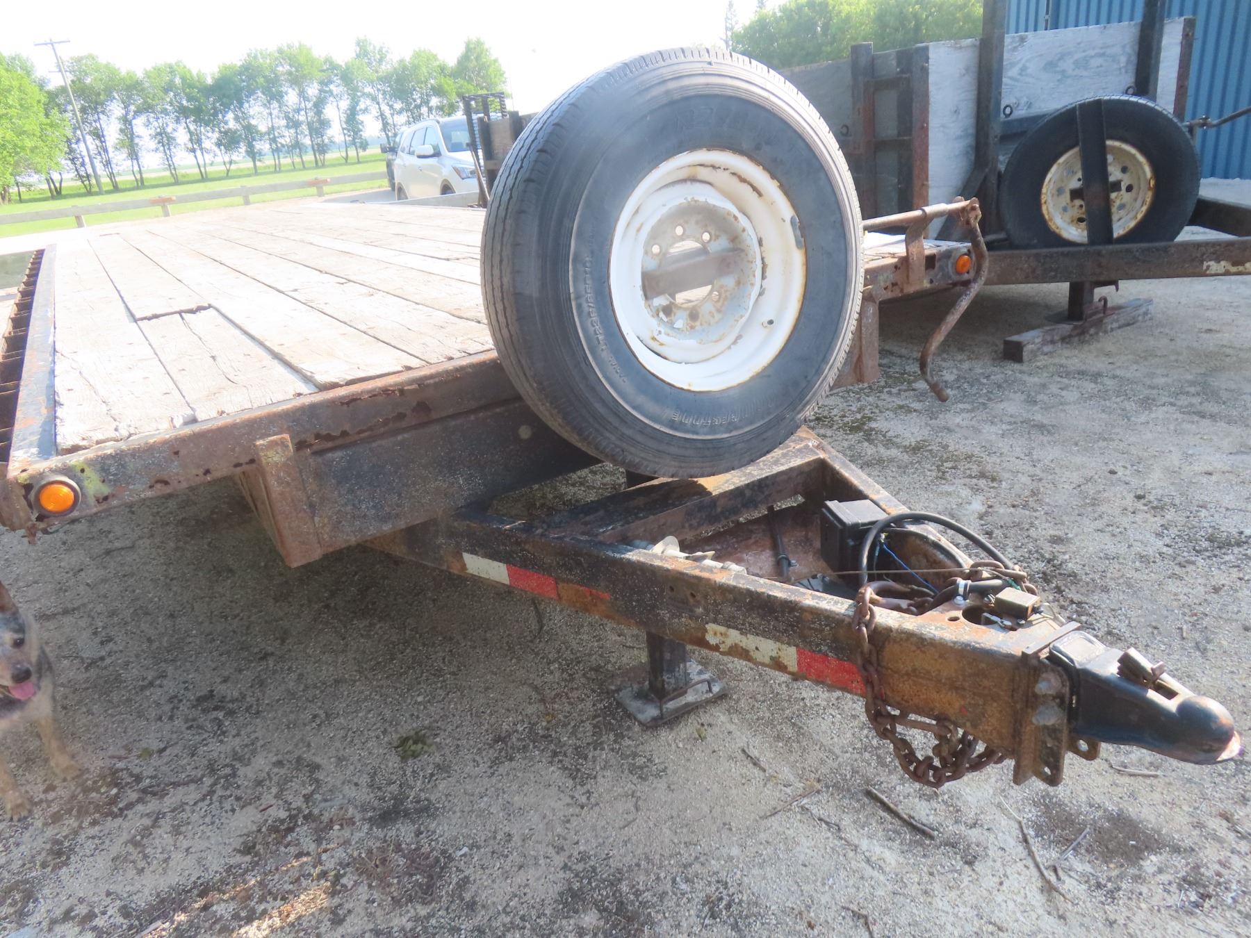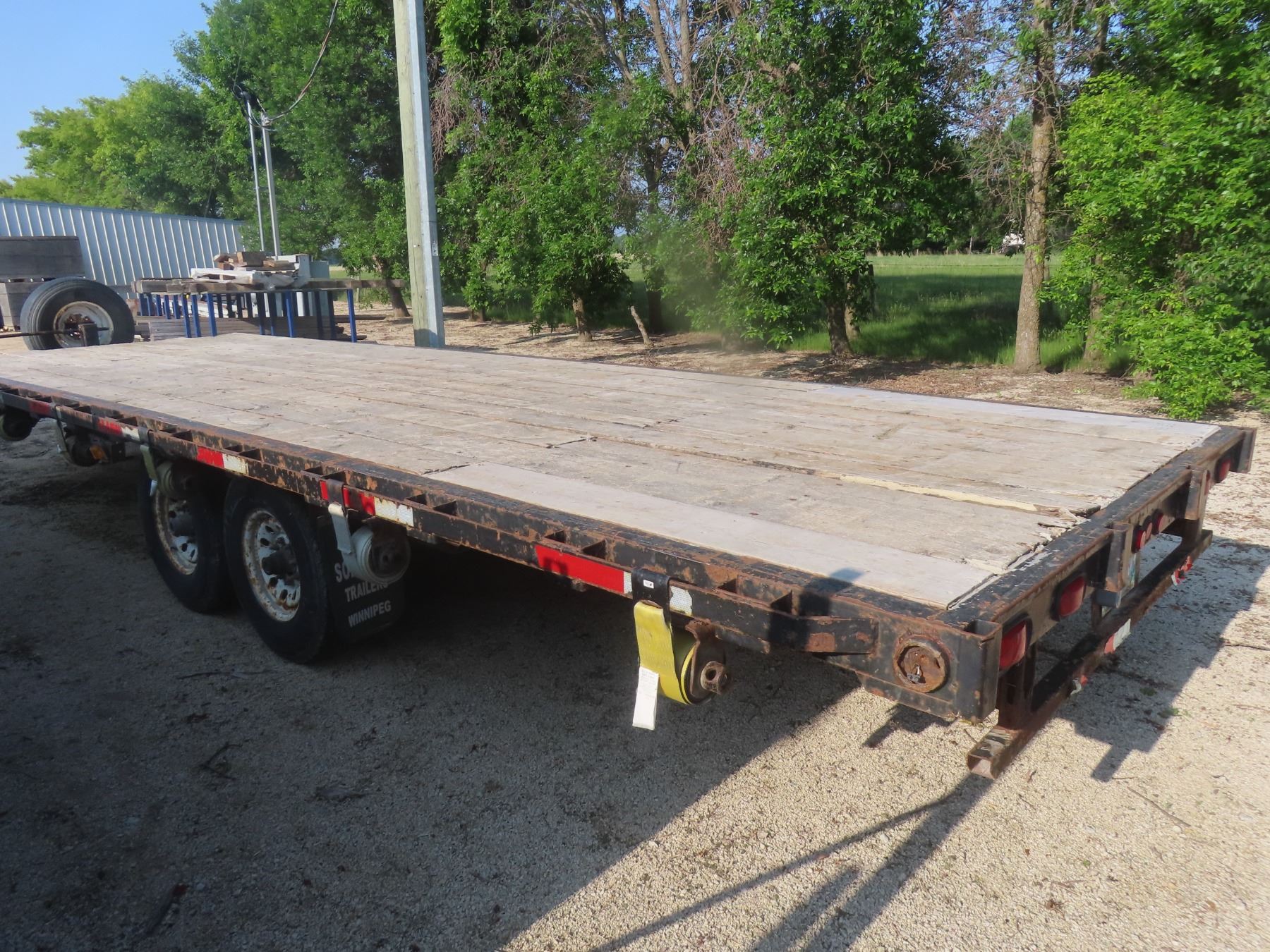 2003 Sokal Bumperhitch 25ft Flatdeck Trailer with (2)x 7000lbs Axles. Stake Pockets, Tie Down Strapping & Comes with a Spare. Has Existing Safety But Expires End of June2025. Has TOD.
