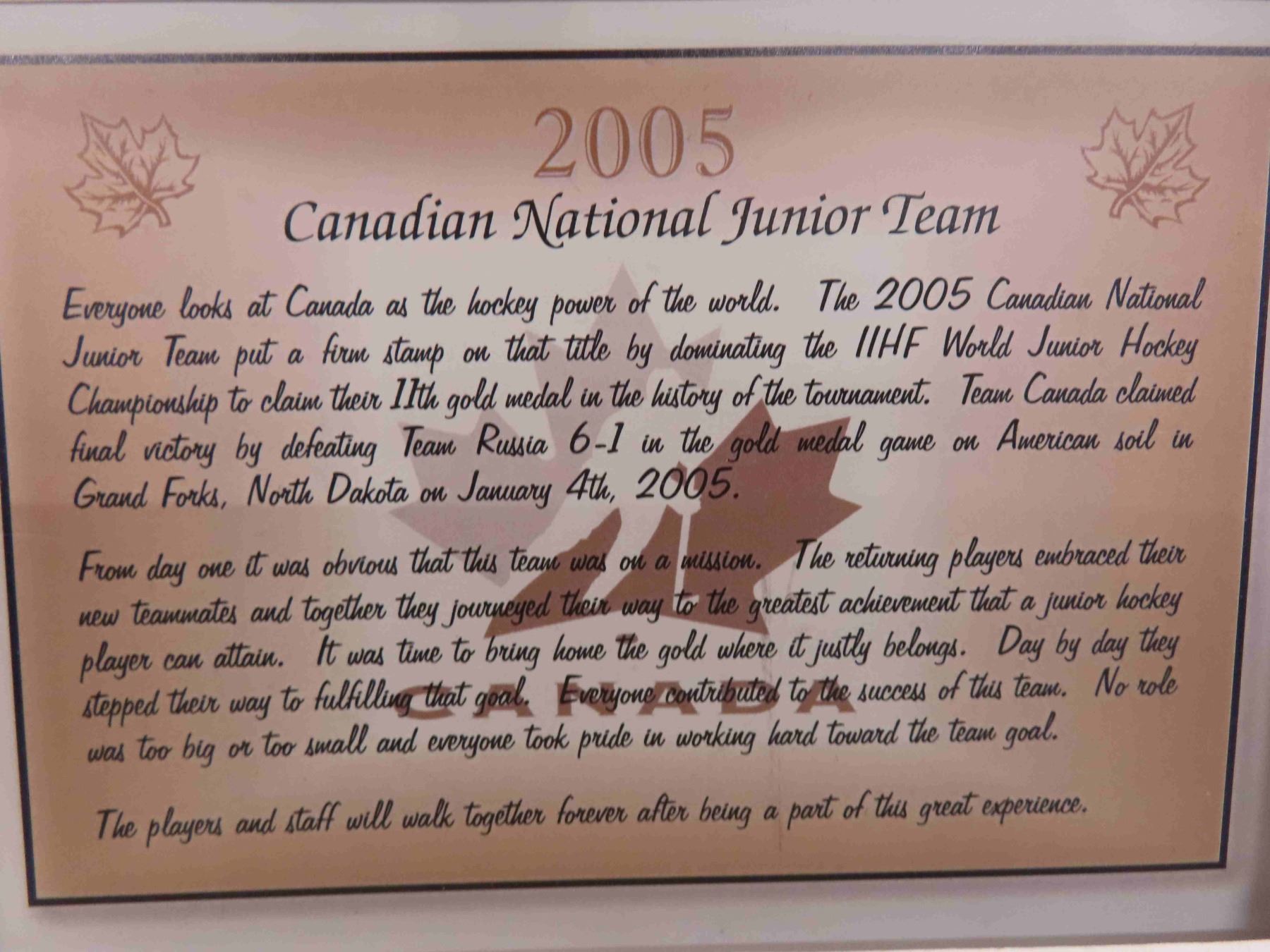 2005 canadian national junior hockey gold metal team photos 20x24