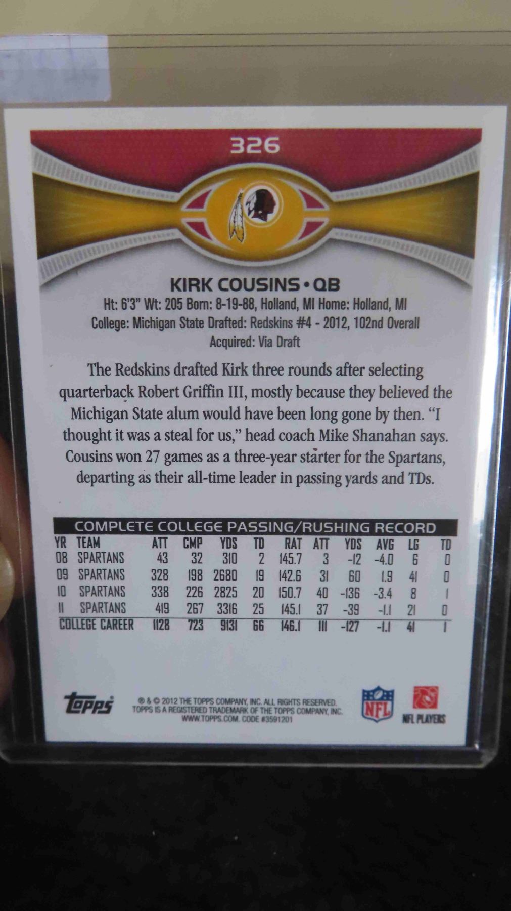 2012 Kirk Cousins Washington Redskins Rookie Card RC Mint