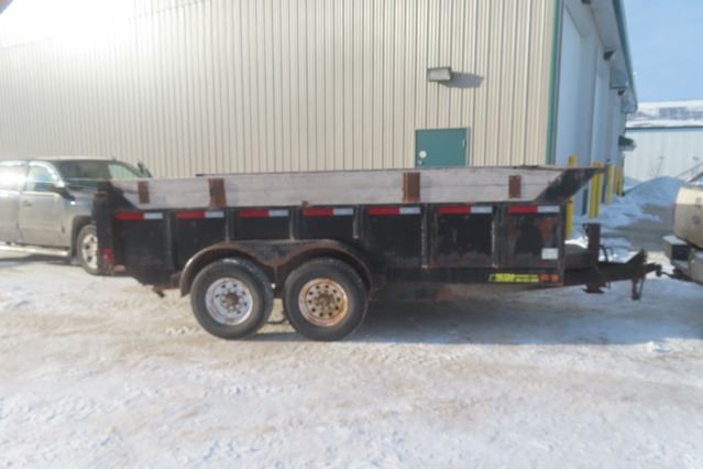 2013 Canada Trailer MFG Electric/Hydraulic Tilt Gravel Tandem 7000LBS x 2 Bumper Hitch Trailer 14' L x 7 1/2 ' W 20'' Height Plus Extensions up to 31'' with Roll Top - Has TOD