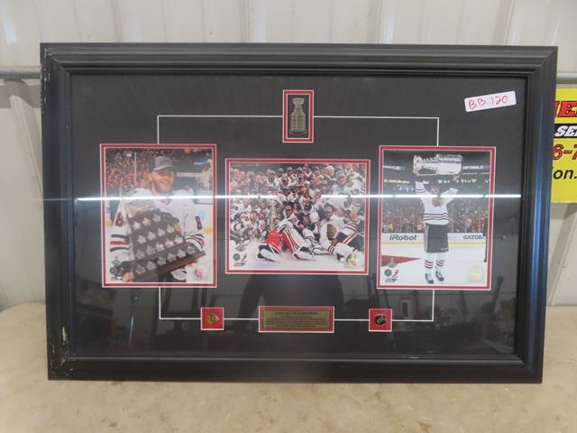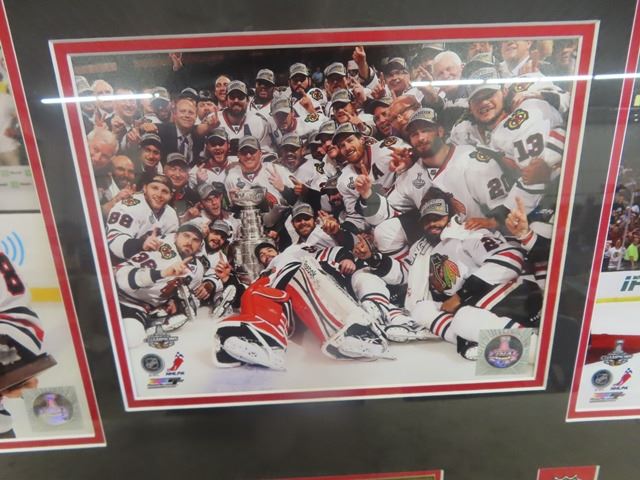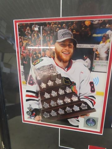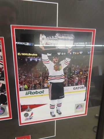 2013 Chicago Blackhawks Stanley Cup Champion Professionally Framed Tribute Photos, Team Picture, Conn Smythe Winner Patirck Kane Picture & Toews Holdinng the Cup 24" x 36" with Brass ID Tag