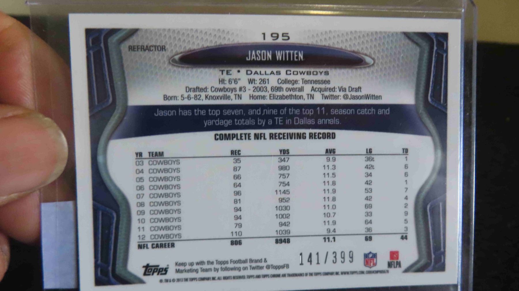 2013 Jason Witten Rare Super Short Print Topps Chrome Pink Numbered 141/399