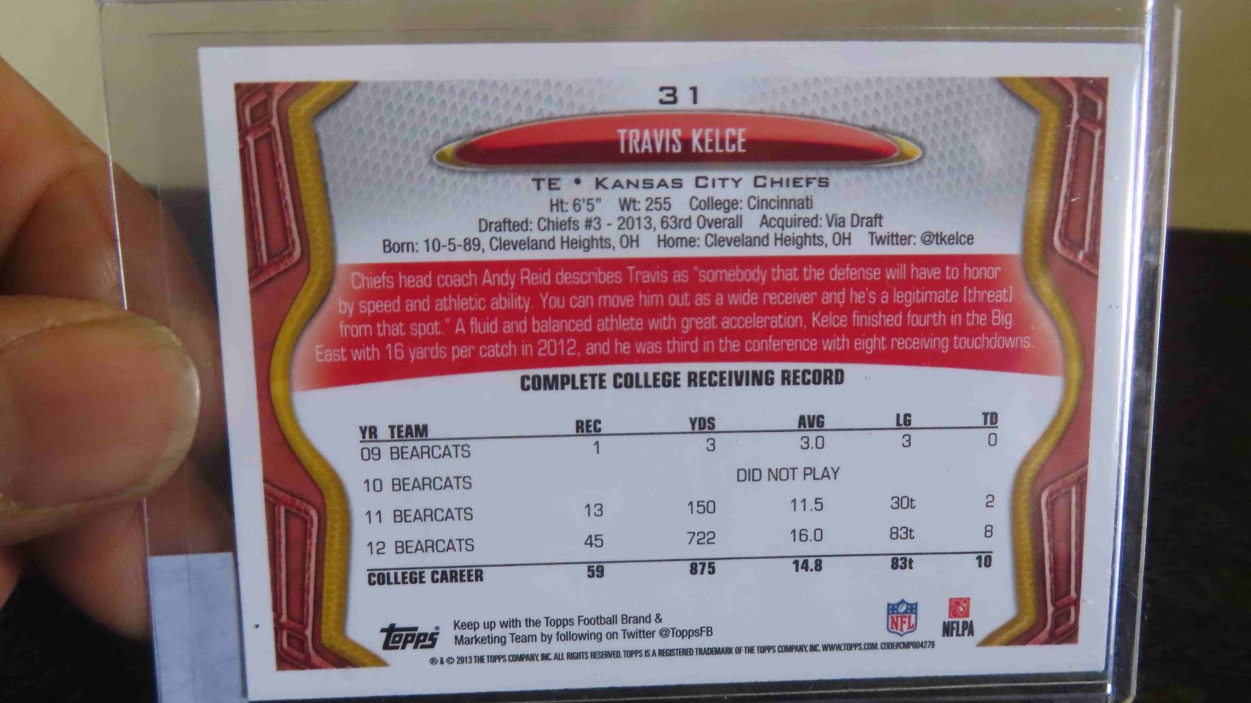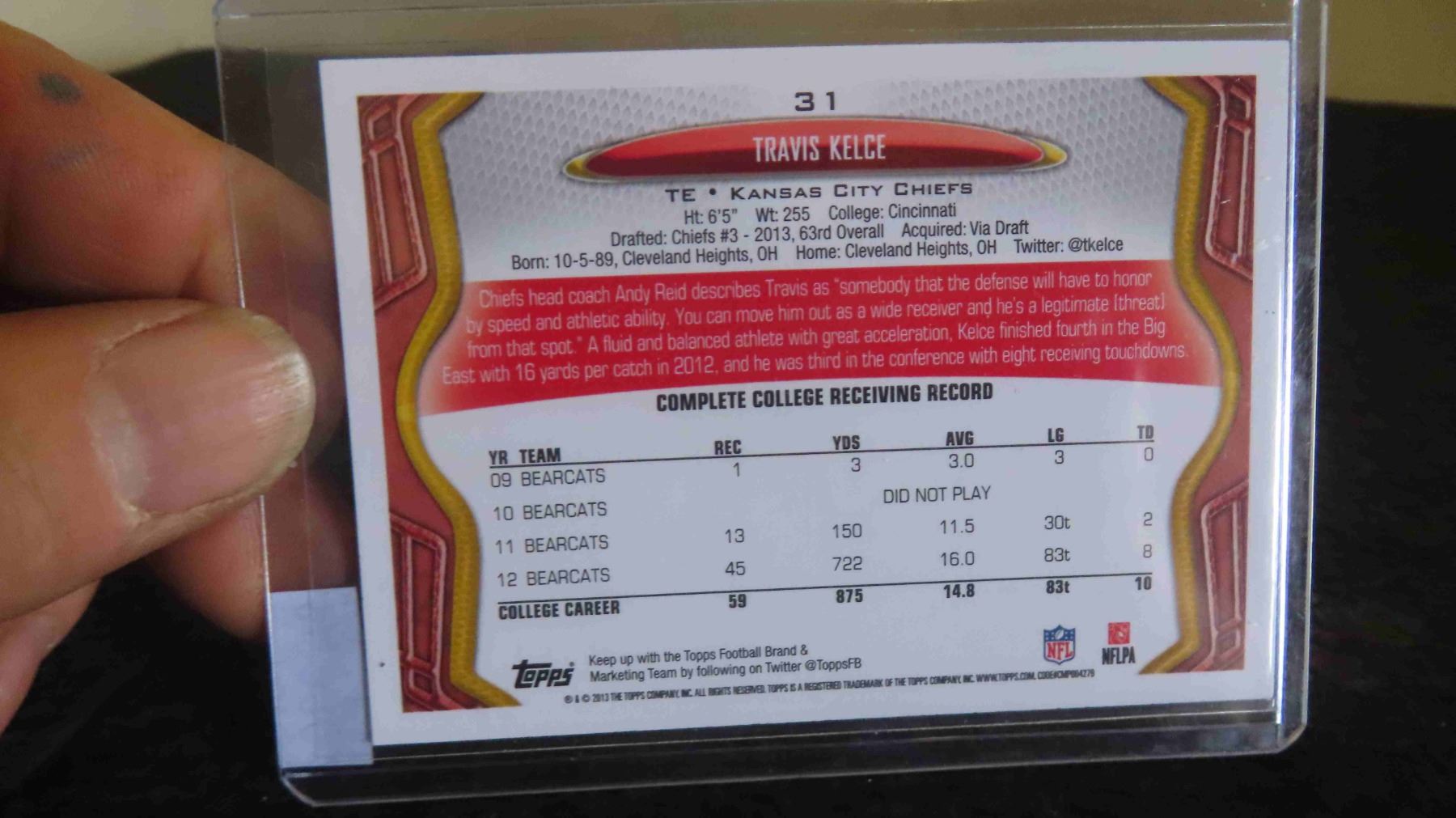 2013 Travis Kelce Kansas City Chiefs Topps Rookie Card RC Mint