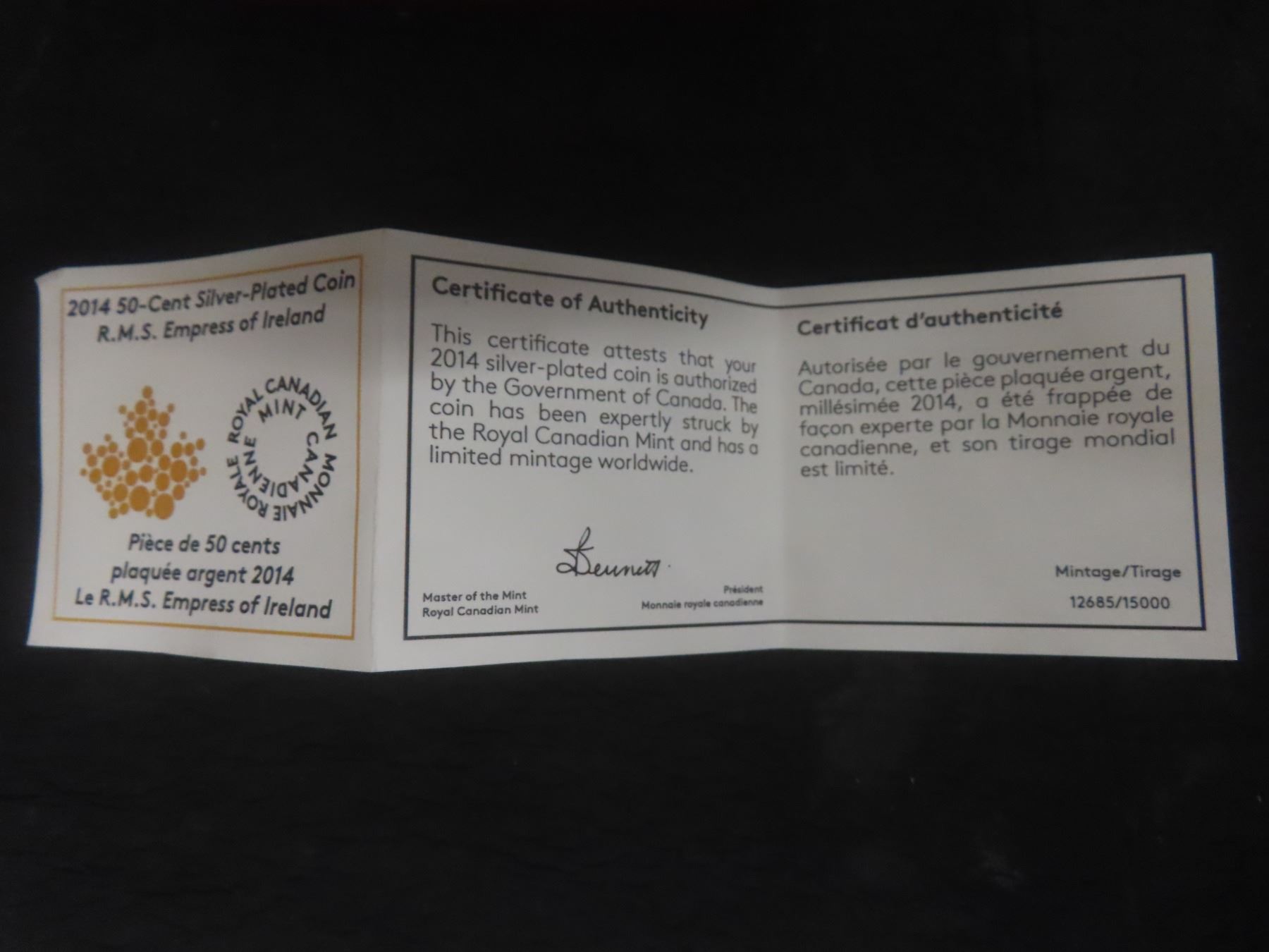 2014 Silver-Plated Canadian 50¢ Coin – R.M.S. Empress of Ireland