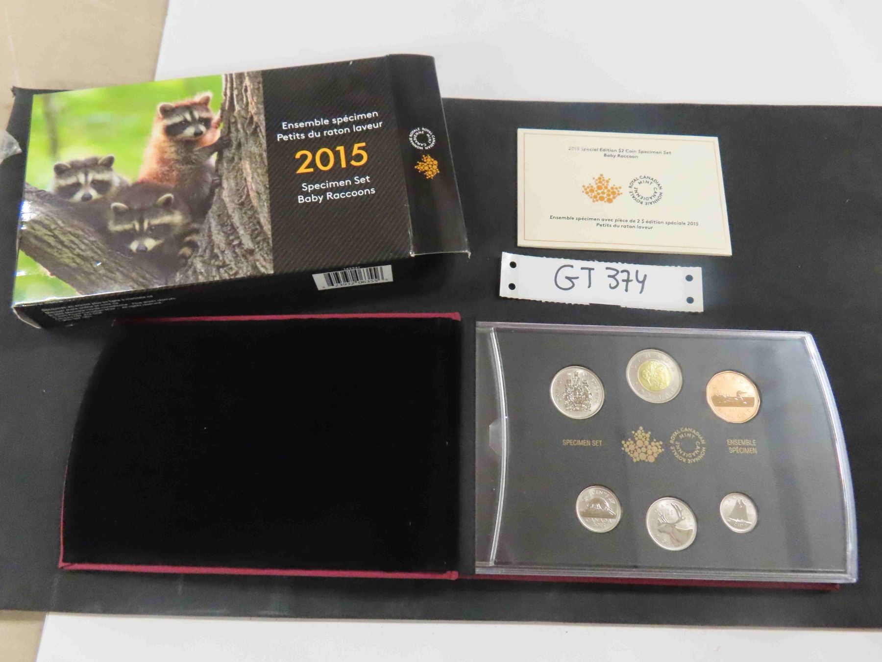 2015 Canada Uncirculated Specimen Coin Set Special Edition Fancy Toonie with Racoons Encapsulated in Display Case with Outer Box Royal Canadian Mint