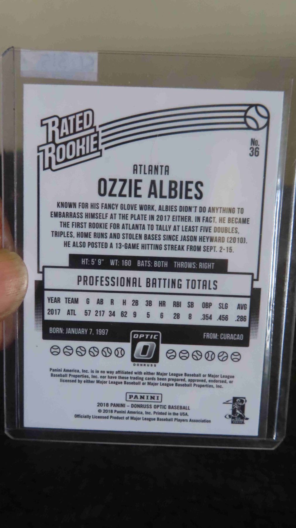 2018 Ozzie Albies Rated Rookie Donruss Optic Atlanta Braves -Mint