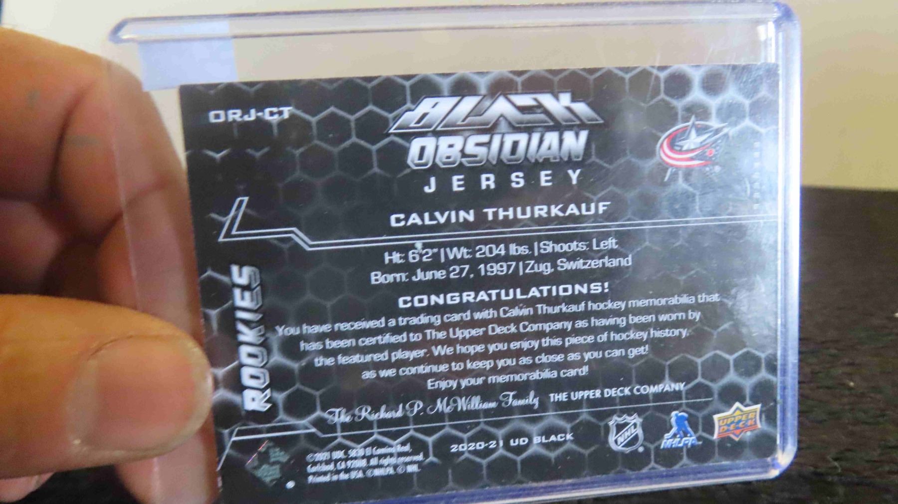 2020/21 Calvin Thurkauf 222/399 Authentic Game Worn Jersey Rookie Card