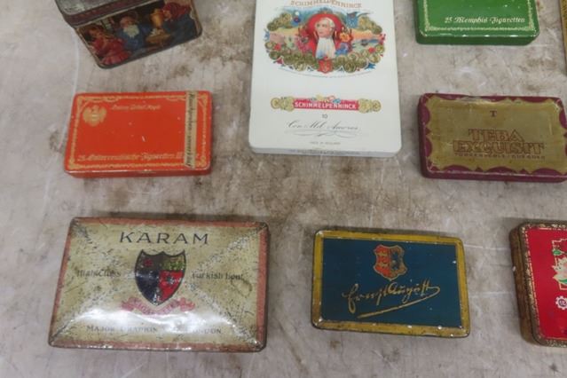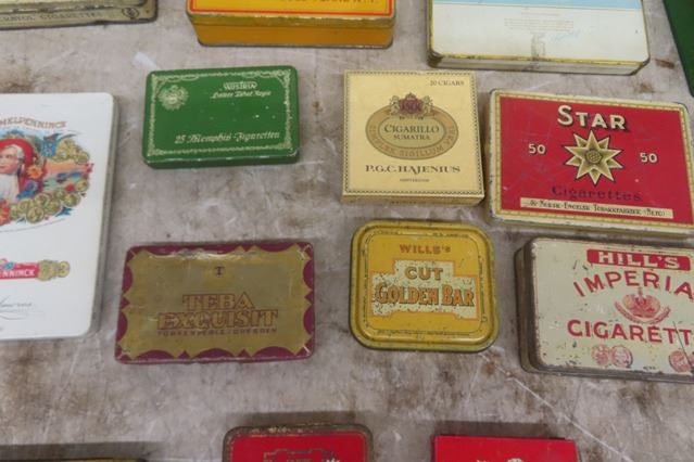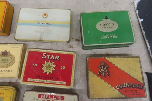 21 Assorted Cigarette + Tobacco Tins: Craven, Star, Gold Flake, Plus more