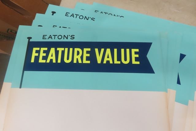 21 Eaton's Feature Value Store Display Cards- Cardboard 11"×19" Unused
