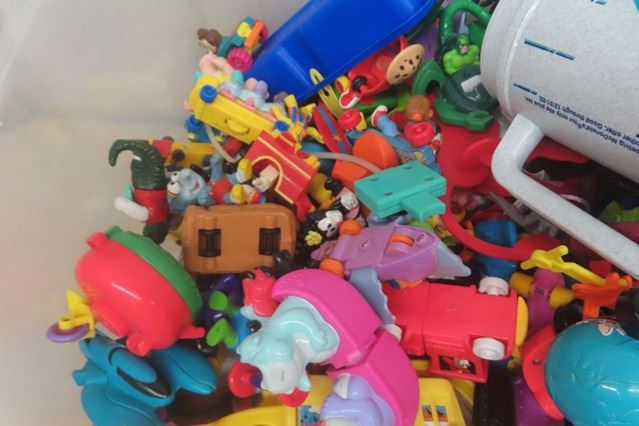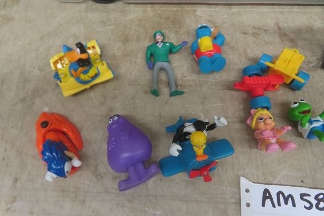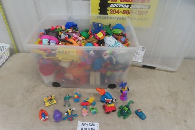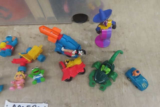 21 Gal Plastic Bin Full of McDonalds Kid's Meal Toys ; Loony Tunes, DC Comic Characters, McDonalds Guys, plus more .... huge lot