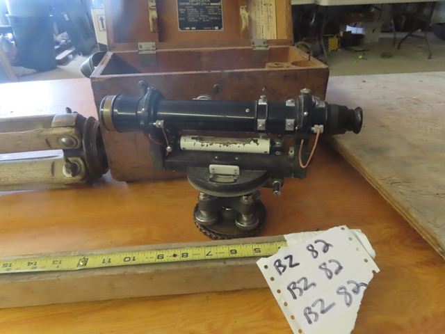 22 Power Surveying Leve with Wooden Case, Tripod & Ruler