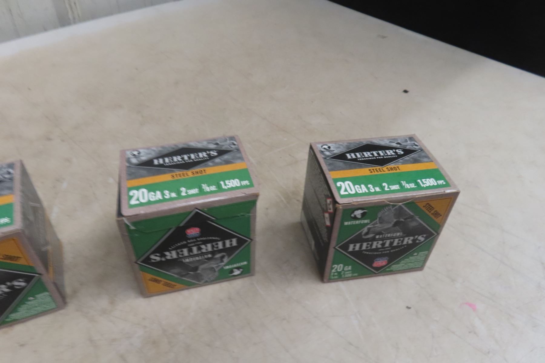 (225 Rounds) Herters 20 Gauge 3'' Ammo **MUST HAVE A VALID PAL TO BID. WE CANNOT SHIP AMMO/PRIMERS. IF YOU REQUIRE SHIPPING AND BID ON AMMO, YOU WILL BE RESPONSIBLE TO PAY FOR IT AND RESELL IT UNDER YOUR CONSIGNMENT IN THE NEXT GUN AUCTION.