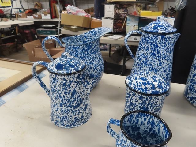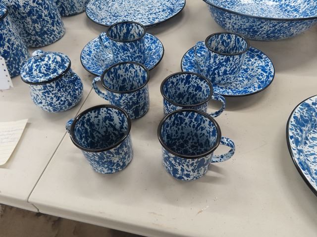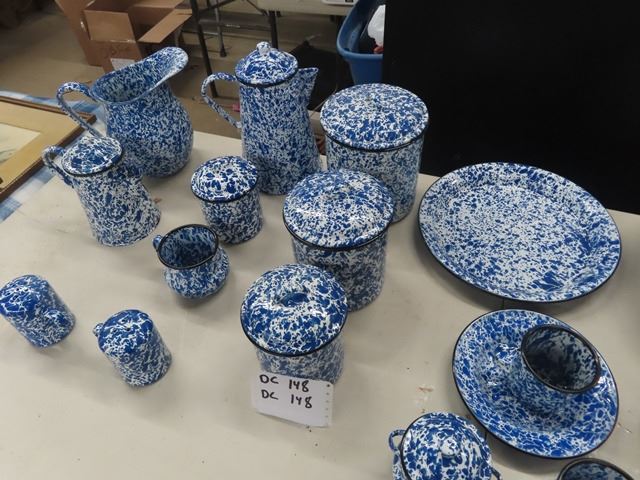 23 Pcs of Enamelware - Blue & White