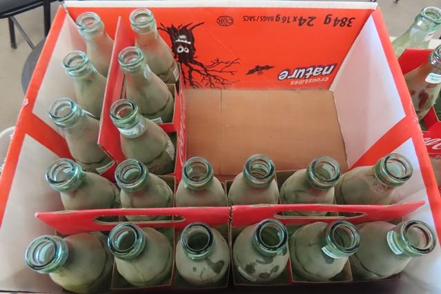 24 Coca-Cola 8pz Embossed Bottles with Canadian Cities on Bottoms