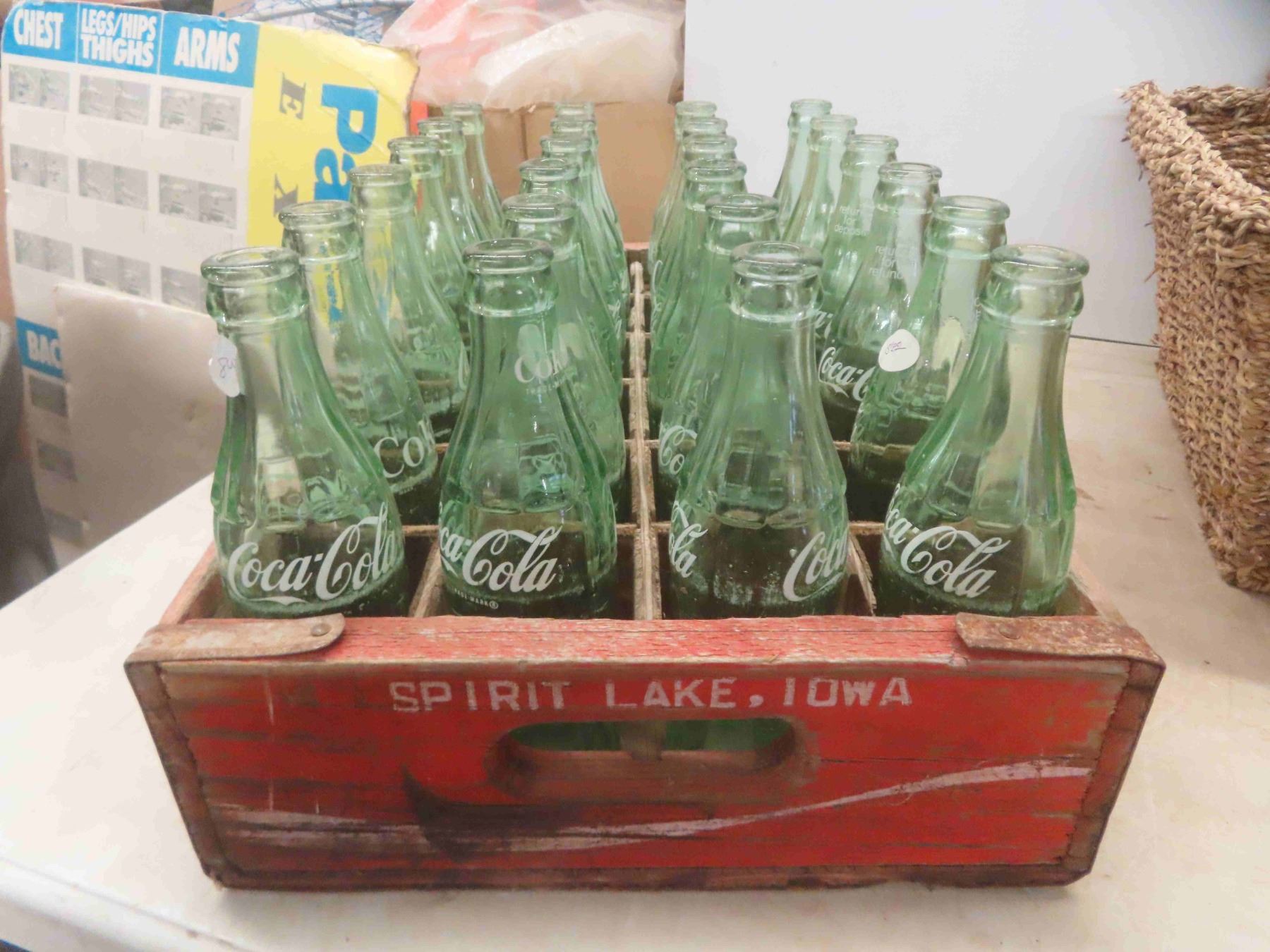24 Coke Bottles with Wood Coke Crate 12'' x 18 1/2'' x 4 1/4'' , 5 Woven