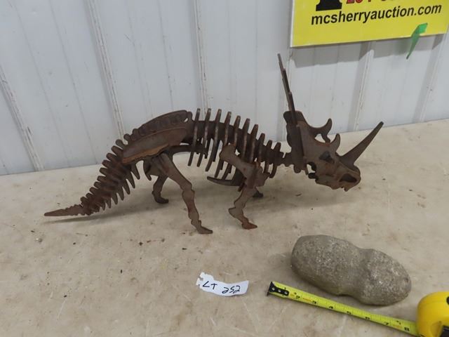 24" Metal Dinosaur Skeleton & Ancient Native Stone Hammer