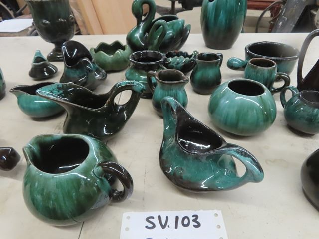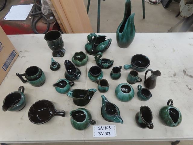 24 pcs of Blue Mountain Pottery; Cups, Creamers, Bowls, Vases plus more