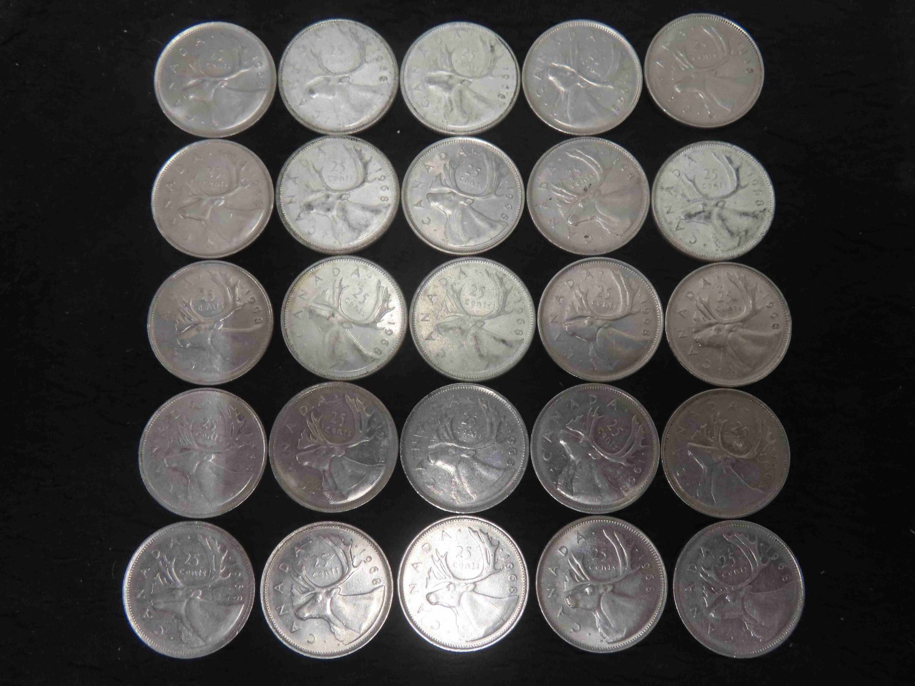 25 Canadian 1968 Quarters