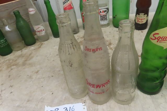 25 Old Pop Bottles ; Hep, Squirt, Drewry's Zero, G+S Watt plus more good old brand names