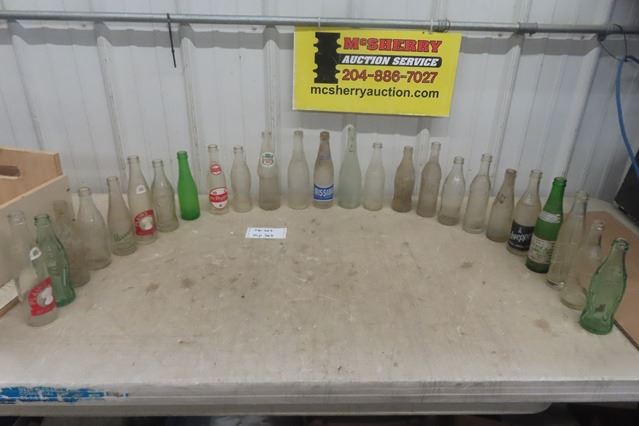 25 Pop Bottles in Wooden Box: Coca-Cola, Dr.Pepper, Mission, America Dry plus more