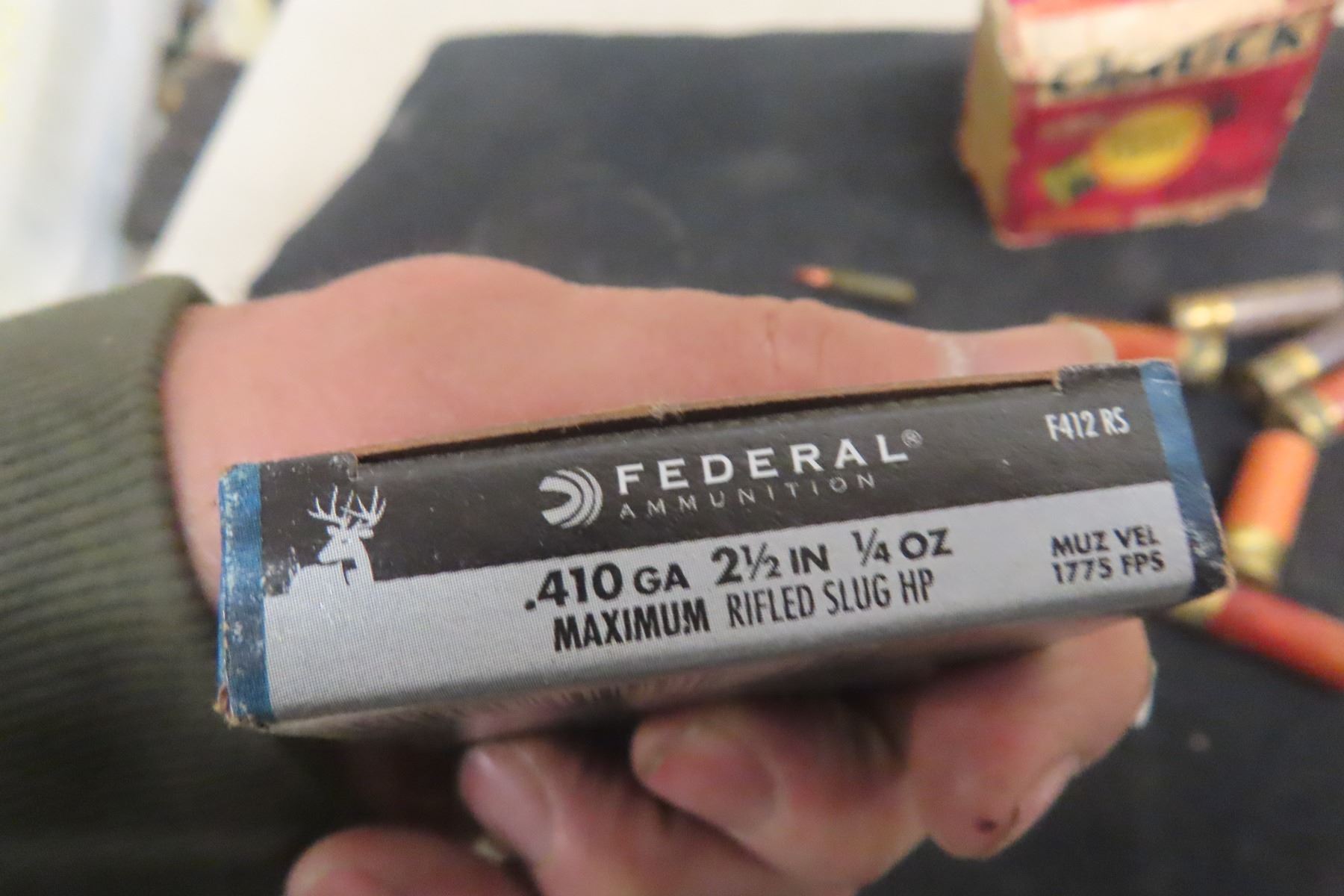 (25) Rounds Ammo: (5) 410 Slugs, (11) Vintage Canuck 12 Gauge, (9) 7.62x39 **MUST HAVE A VALID PAL TO BID. WE CANNOT SHIP AMMO/PRIMERS. IF YOU REQUIRE SHIPPING AND BID ON AMMO, YOU WILL BE RESPONSIBLE TO PAY FOR IT AND RESELL IT UNDER YOUR CONSIGNMENT IN THE NEXT GUN AUCTION.