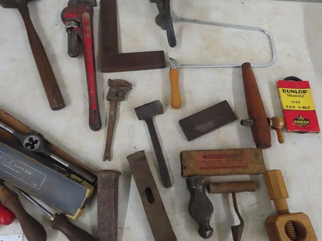 25 Vintage Tools, Hammer, Knife Sharpeners Pipe Wrench Plus More