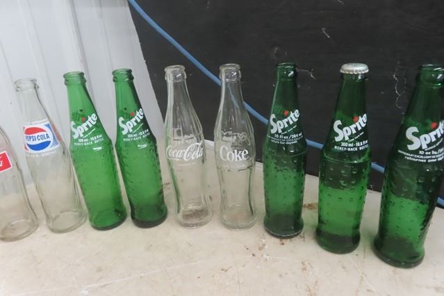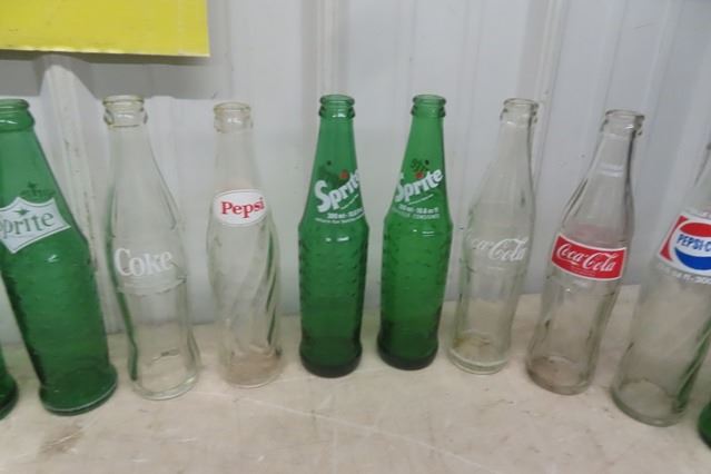 26 Assorted Pop Bottles: Coke, Sprite, Pepsi