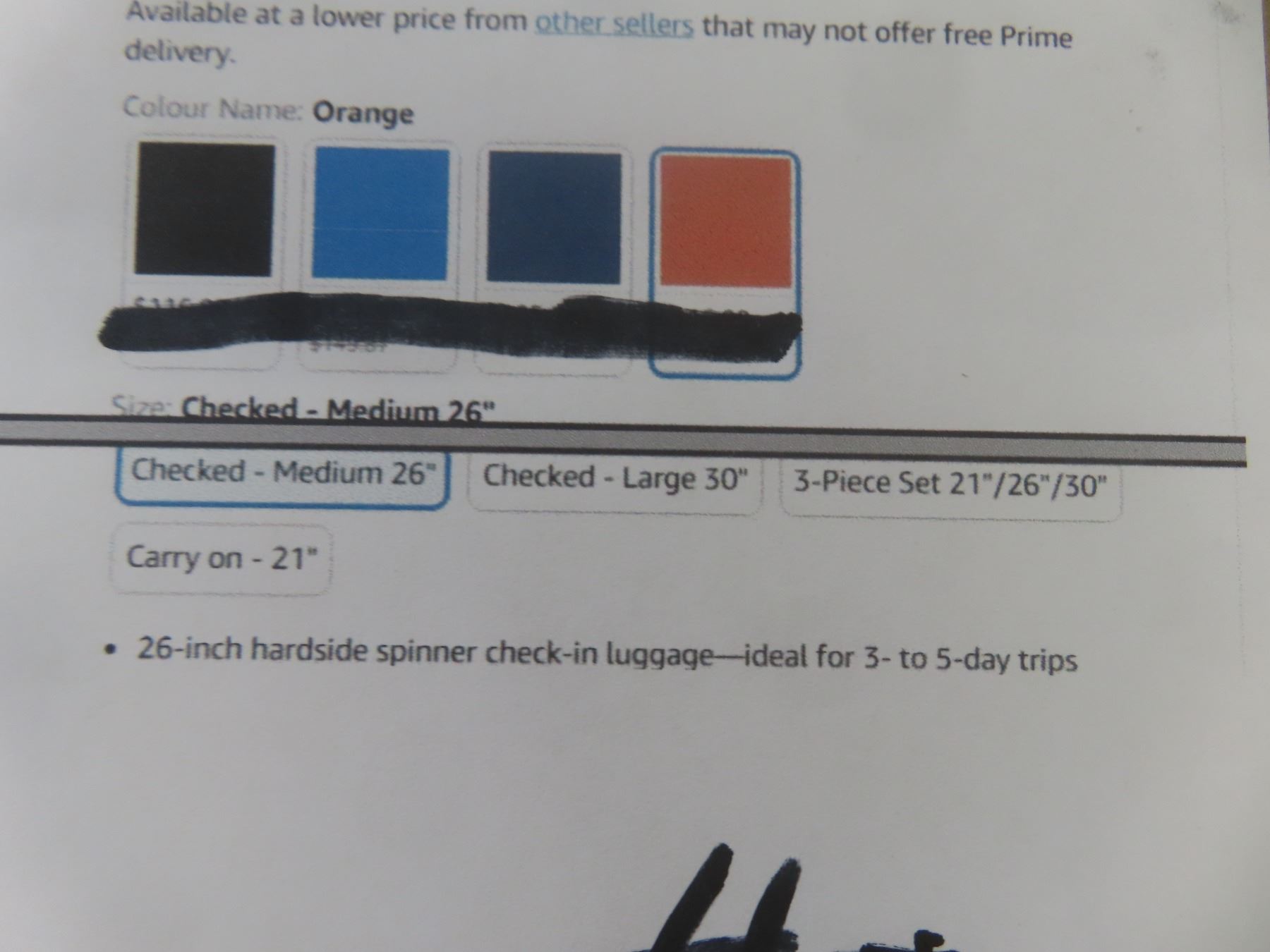 26" Hard side Checked Luggage with Wheels 15% More Space with Scratch Resistance Surface, Four Multi Dimensional Wheels - Orange New or Store Return