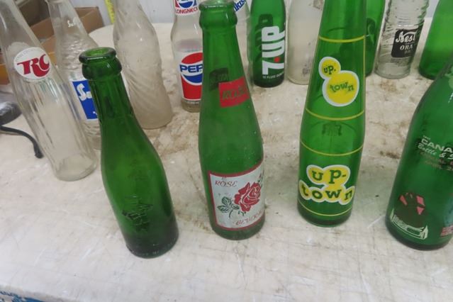 27 Old Pop Bottles ; Squirt, Uptown, Stubby, Keystone, Canada B+S Club, Rose, Drewry's plus other good brand names