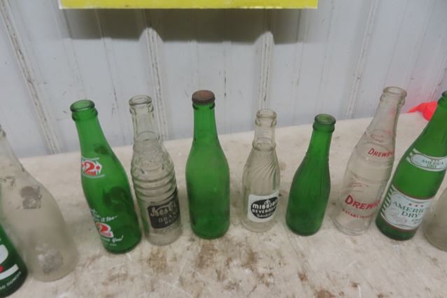 27 Old Pop Bottles ; Squirt, Uptown, Stubby, Keystone, Canada B+S Club, Rose, Drewry's plus other go