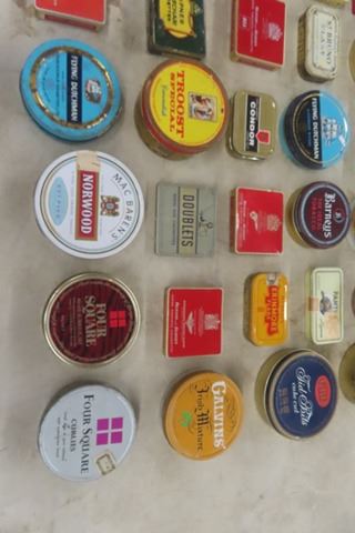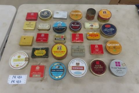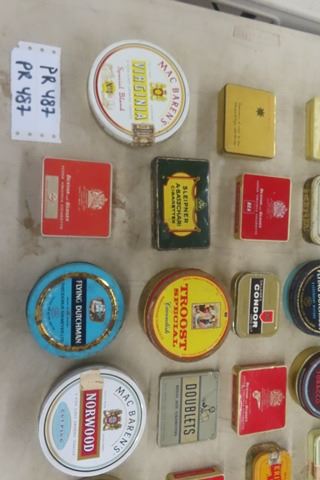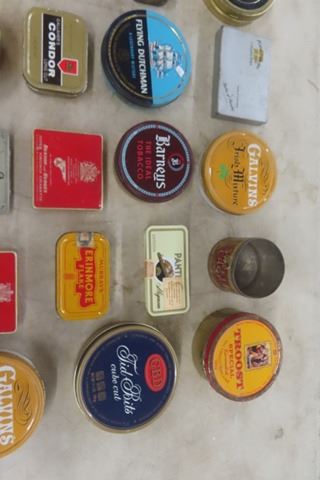 28 Assorted Cigarette + Tobacco Tins: Four Square, Benson + Hedges, Flying Dutchman