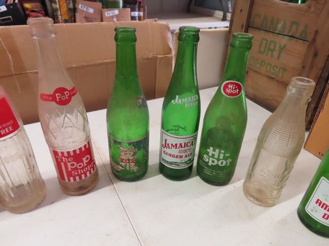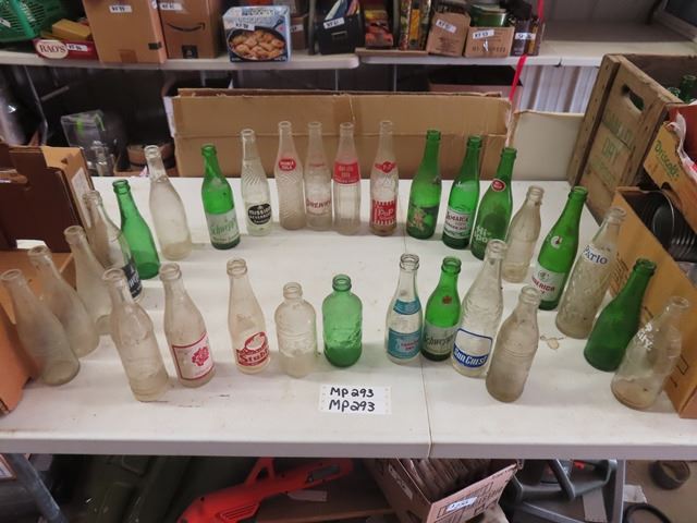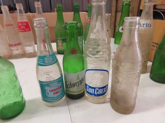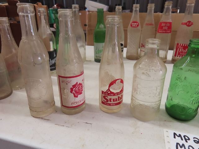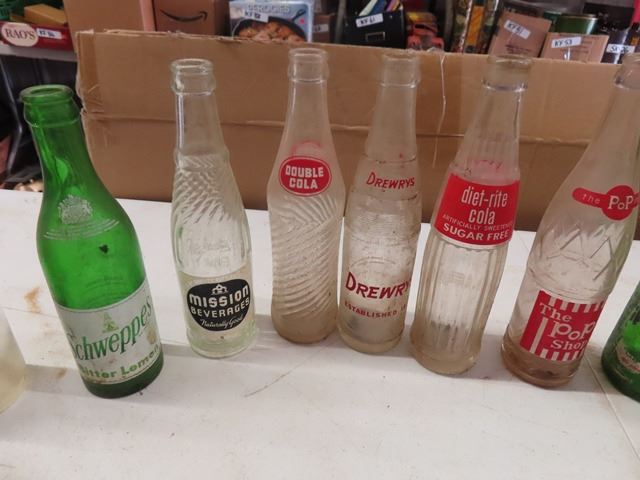 29 Assorted Pop Bottles; Stubby, Rose, America Dry, Mission, Mountain Dew, plus more