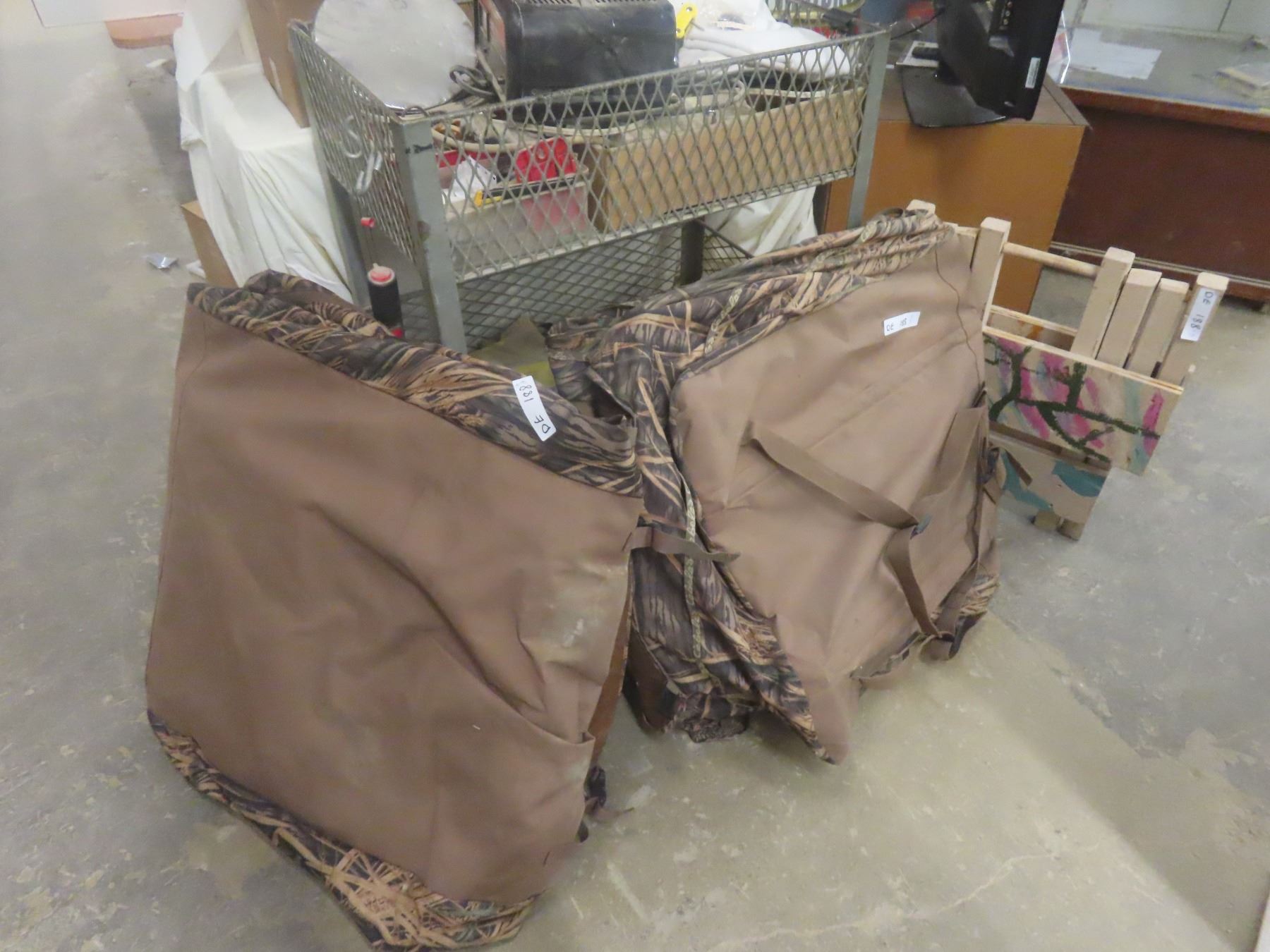 2x Cabelas Layout Hunting Blinds + Wood Folding Table