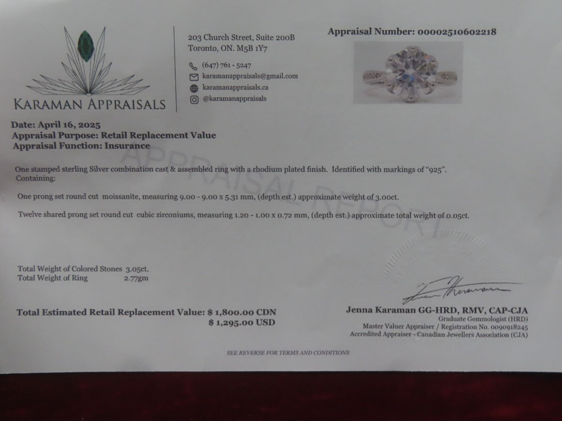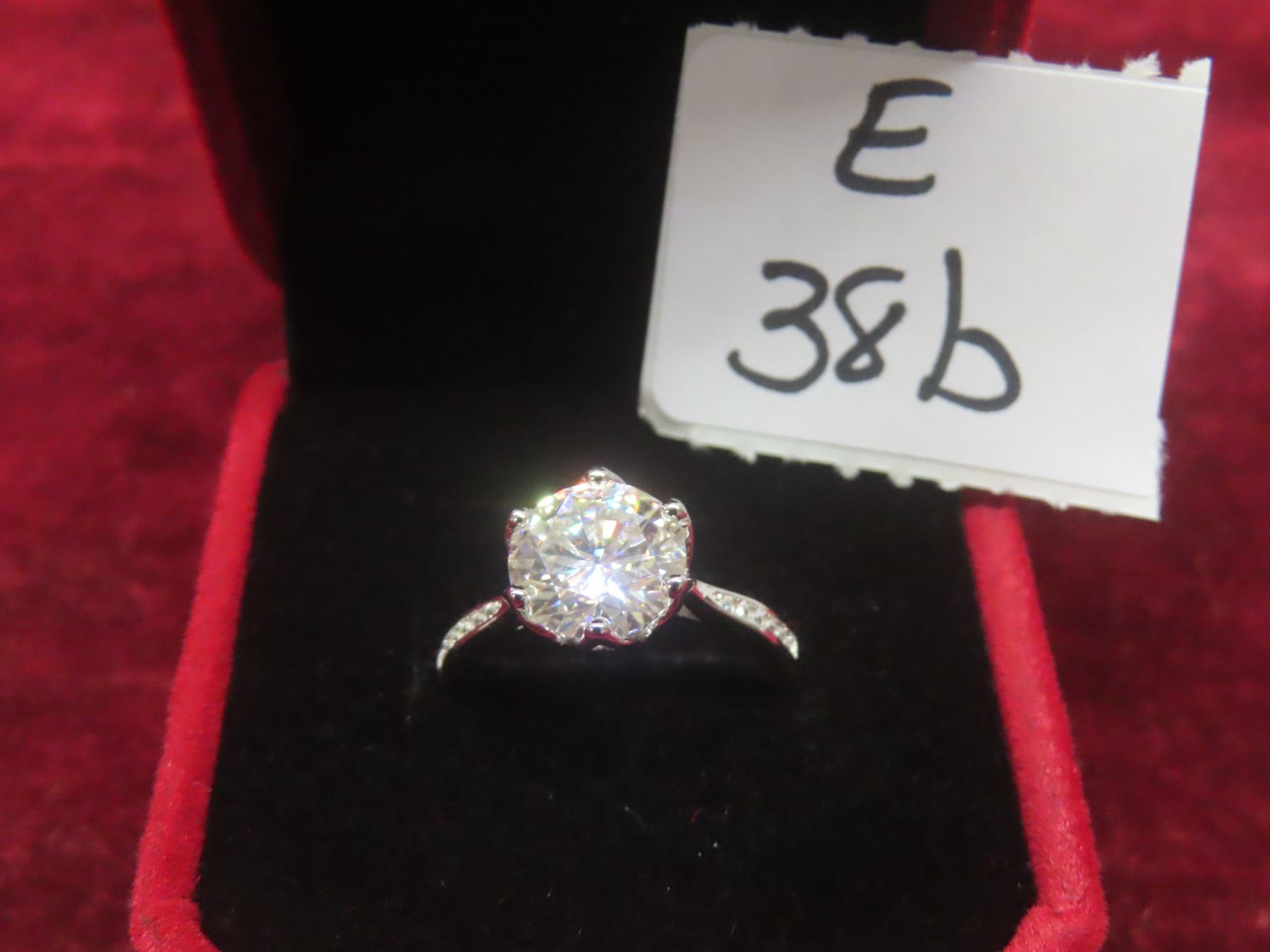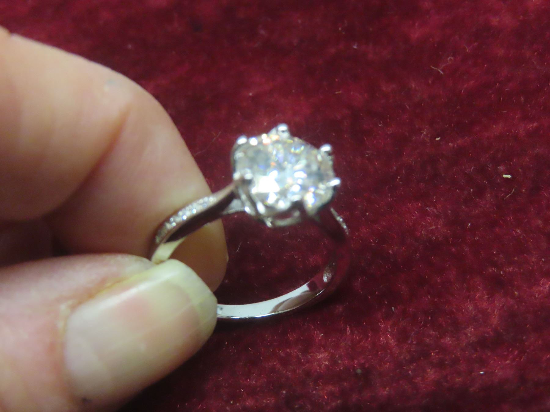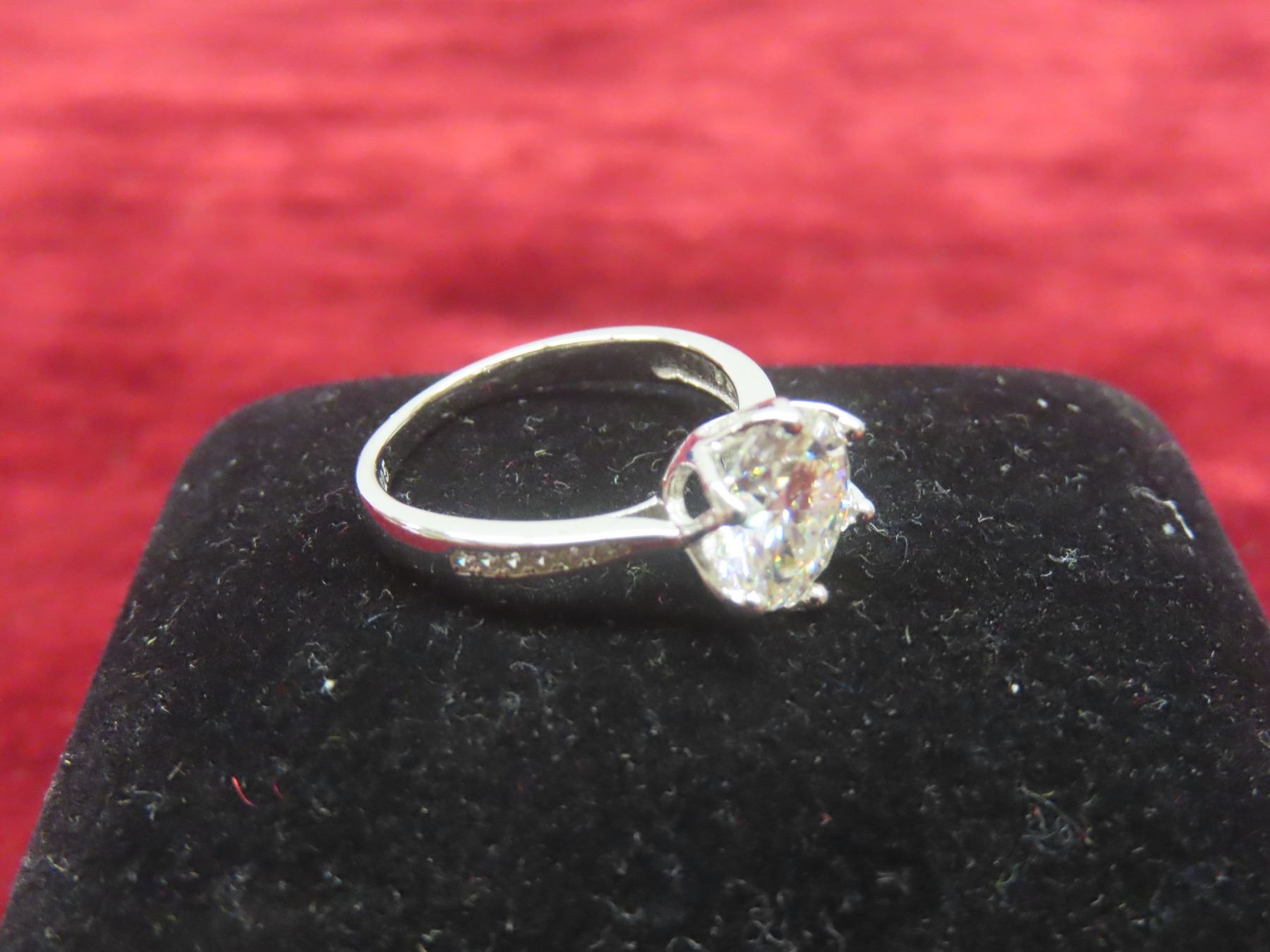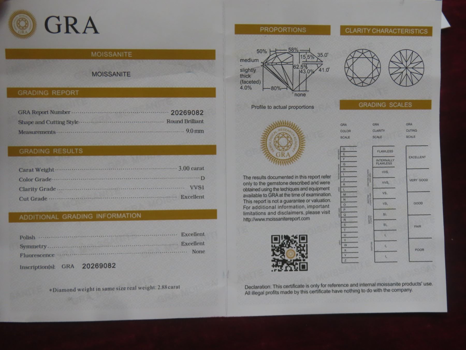 3.00 CT GRA Certified Round Brilliant Cut Moissanite Stone VVS D Color With 12 Round Brilliant Cut Cubic Zirconia Set in Shanks Set in 925 Silver Ring Size 7 Retail Value $1,800.00