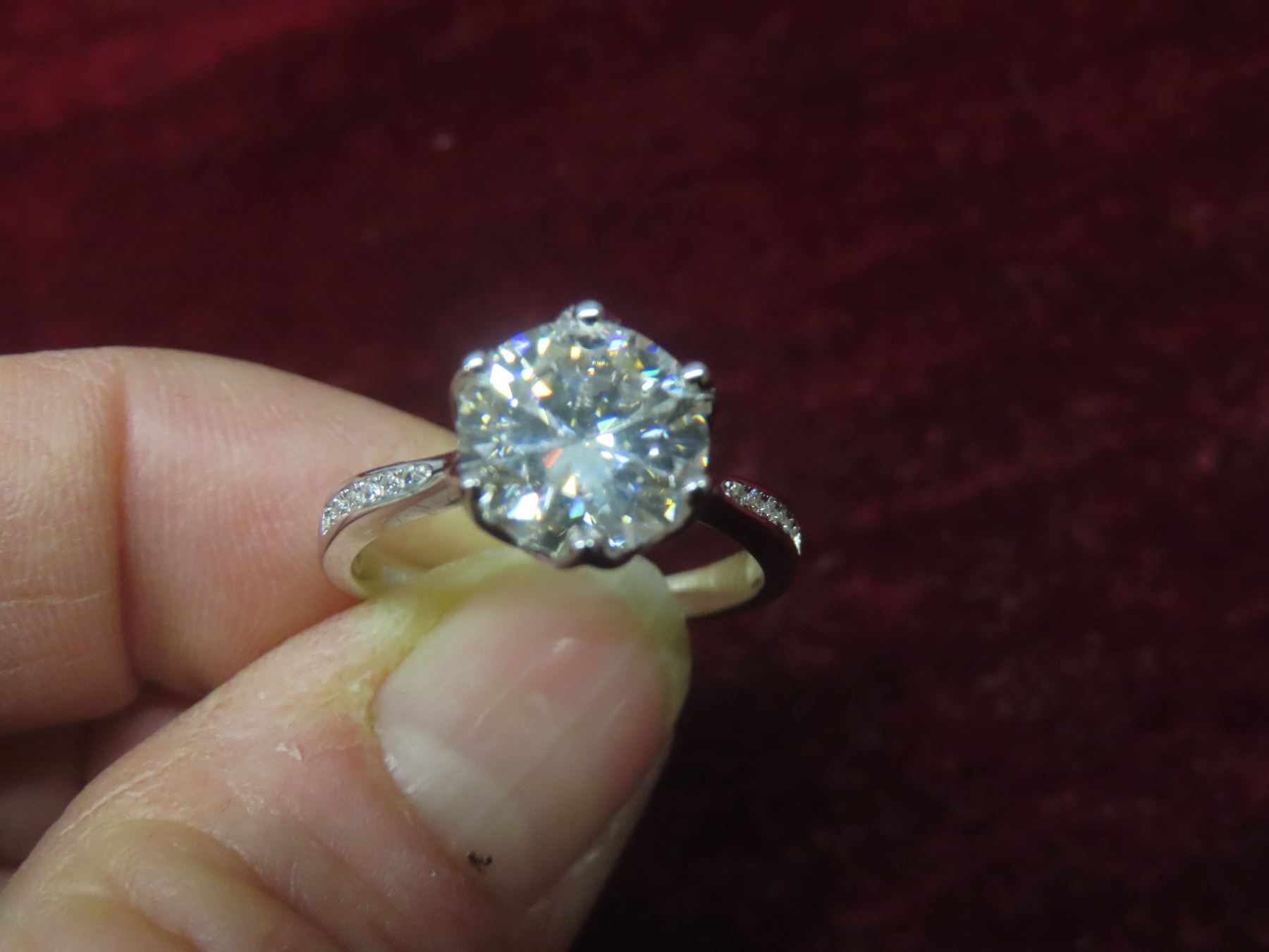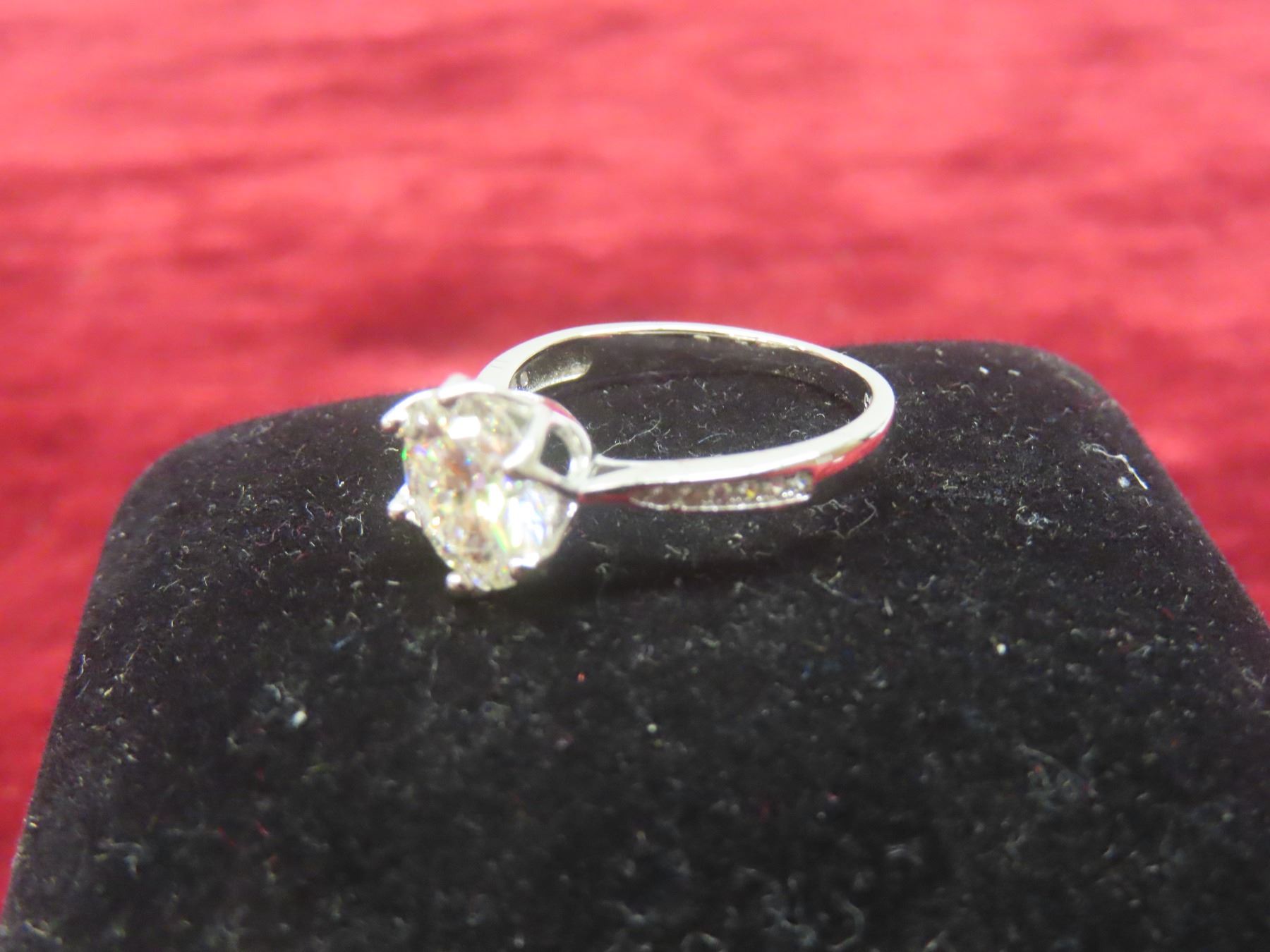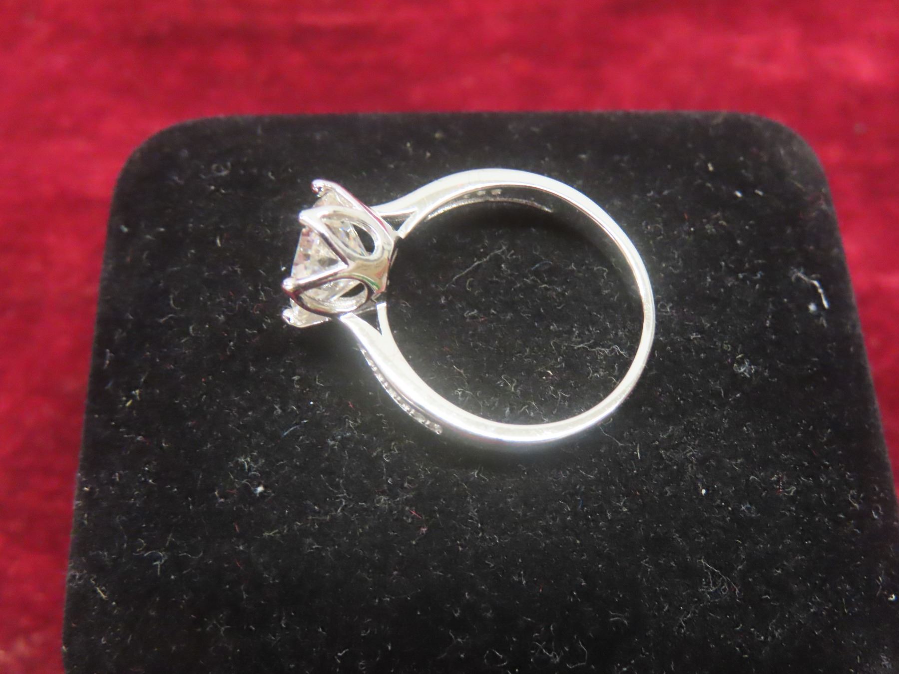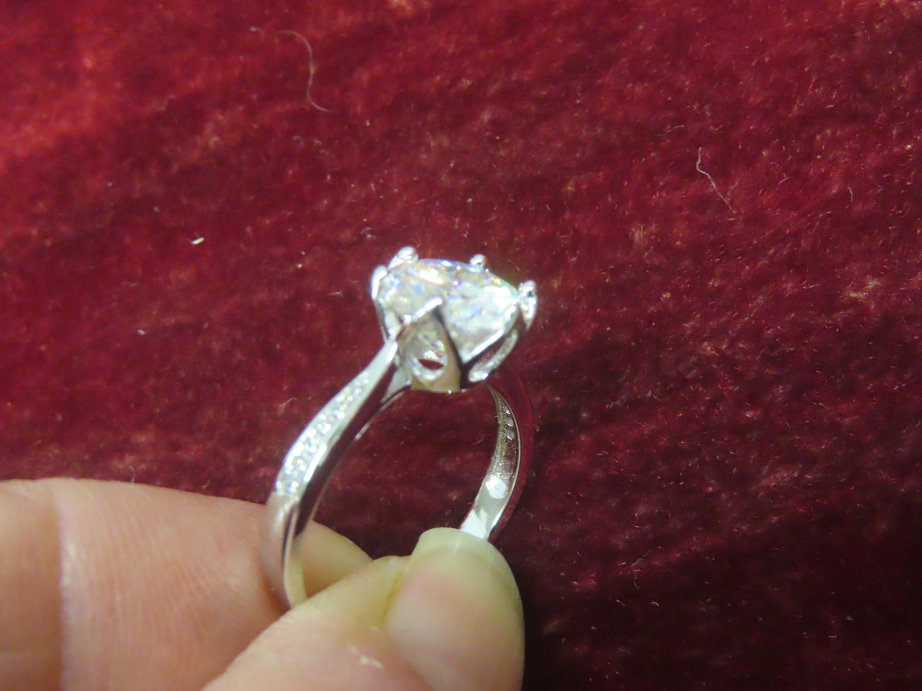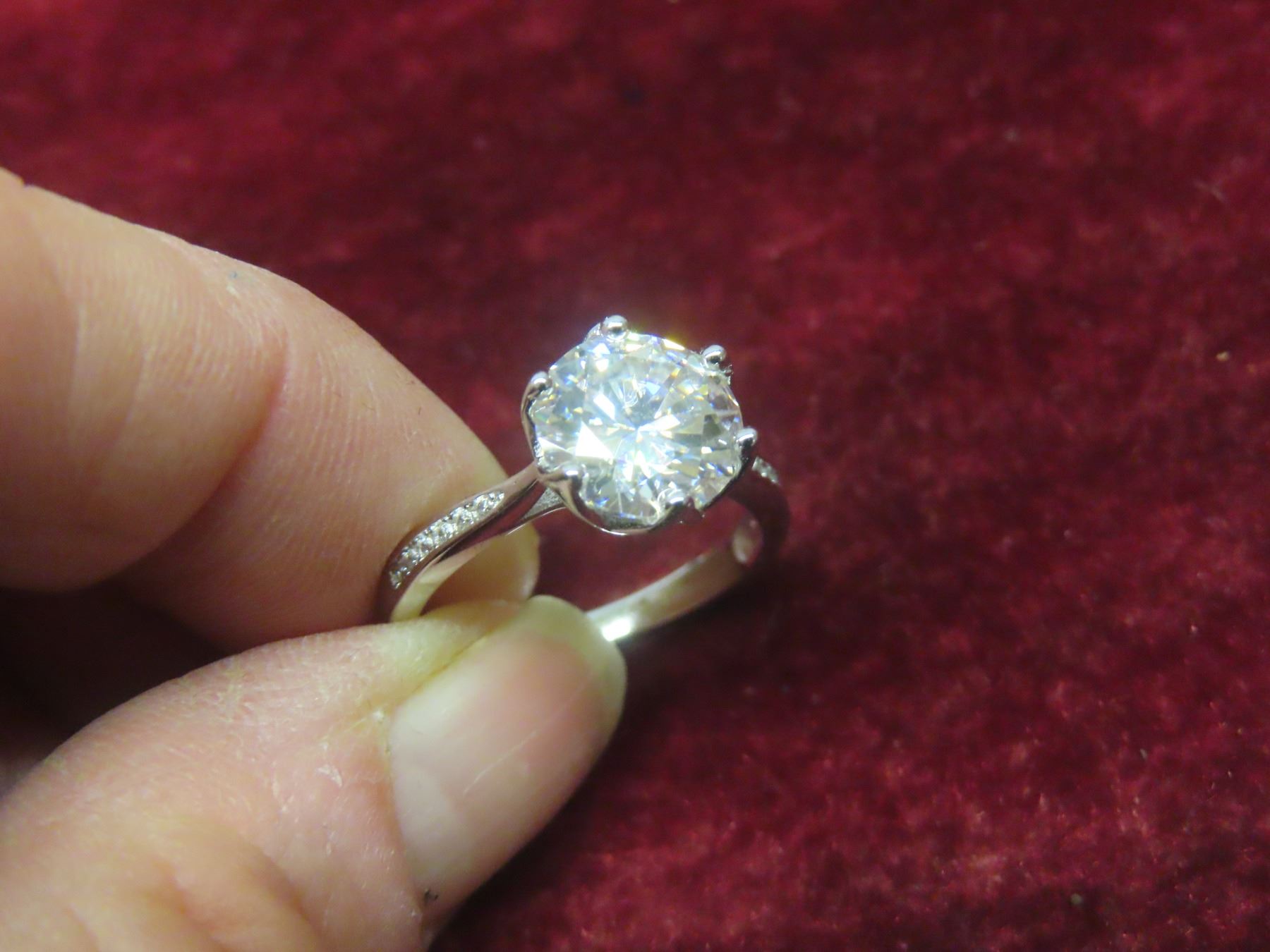 3.00 CT GRA Certified Round Brilliant Cut Moissanite Stone VVS D Color With 12 Round Brilliant Cut Cubic Zirconia Set in Shanks Set in 925 Silver Ring Size 7 Retail Value $1,800.00
