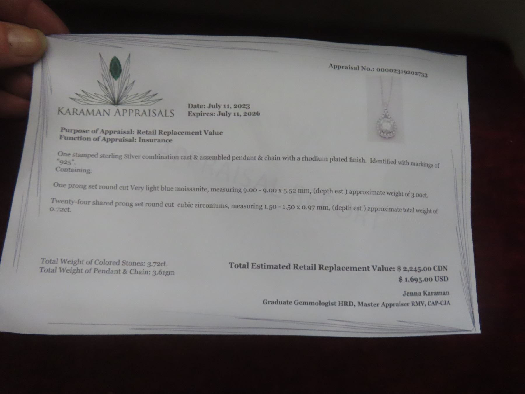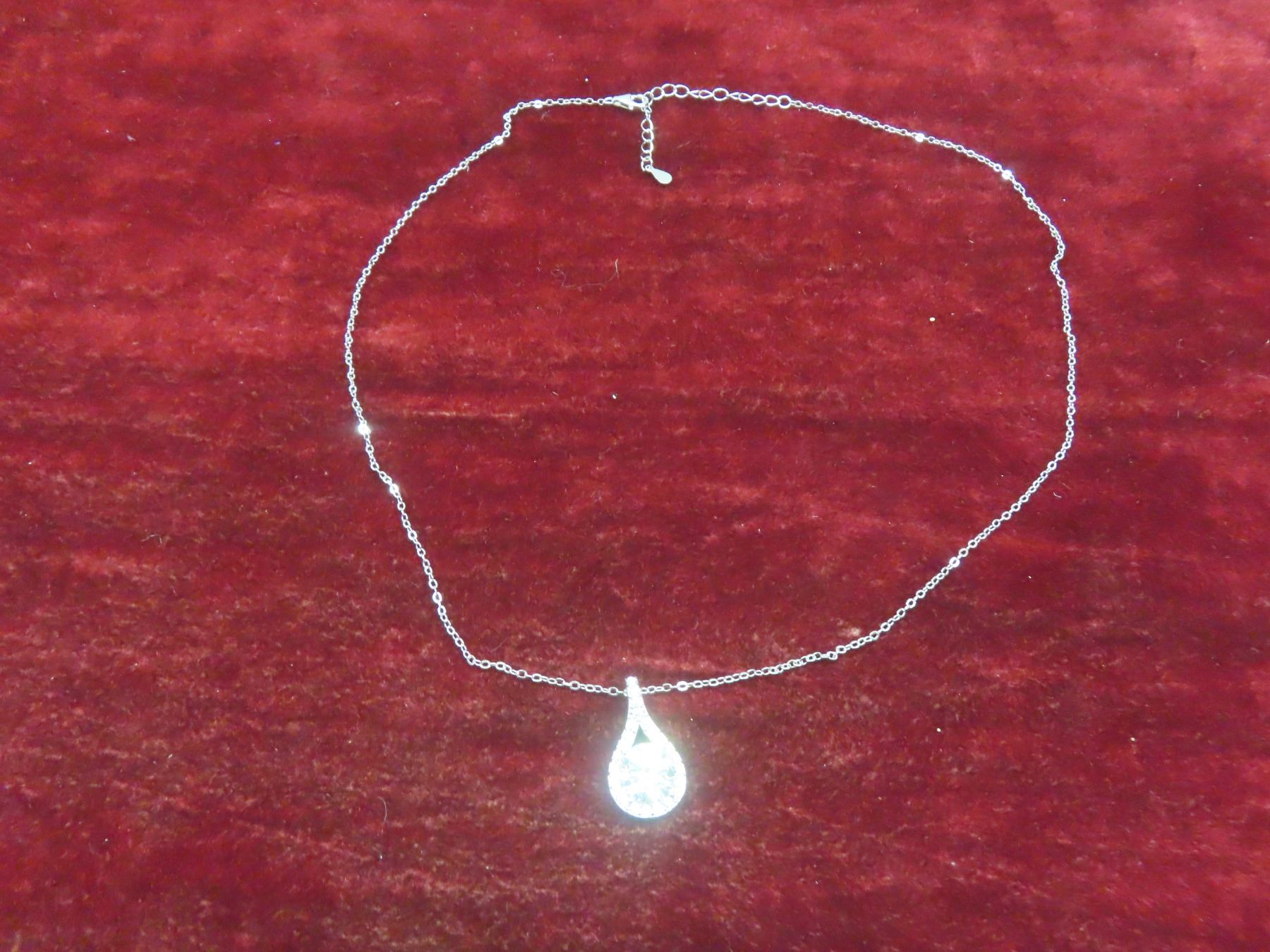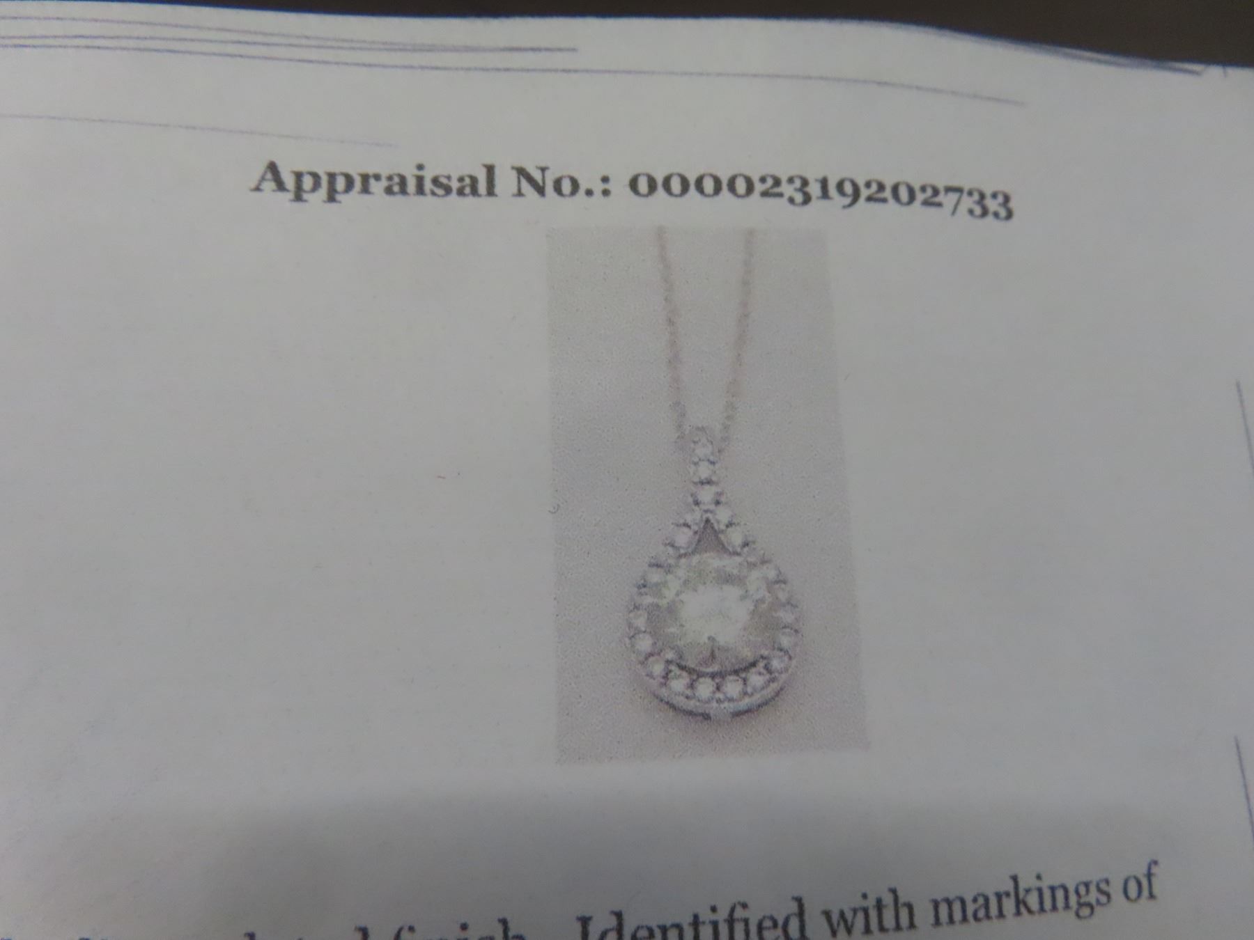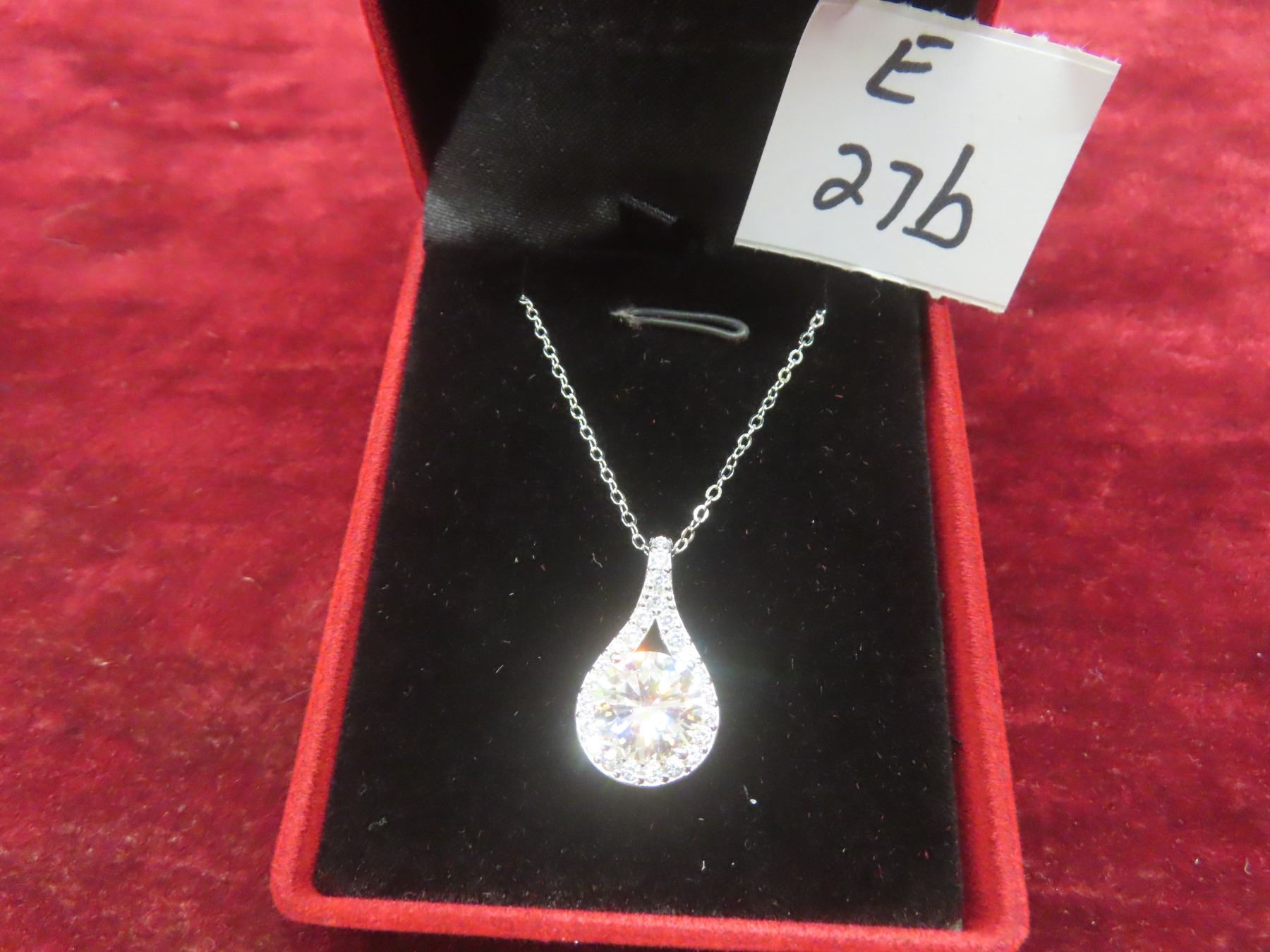 3.00 CT GRA Certified Round Brilliant Cut Moissanite Stone VVS D Color With the 24 Round Brilliant Cut Cubic Zirconia Set in Tear Drop Shaped Halo and Set in 925 Silver Pendant Retail Value $2,245.00