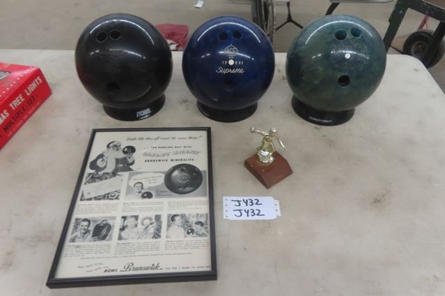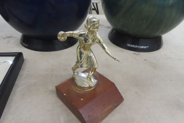 (3) 10 Pin Bowling Balls, Framed Bowling Ball Advertising  Bowling Trophy
