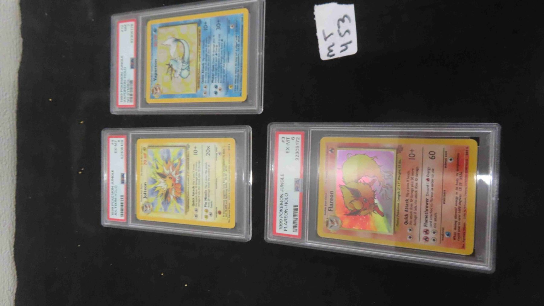 (3) 1999 Pokemon Cards: 1 Jolteon - Holo Jungle, 1 Jungle Vaporeon Holo, 1 Jungle Flareon -Holo