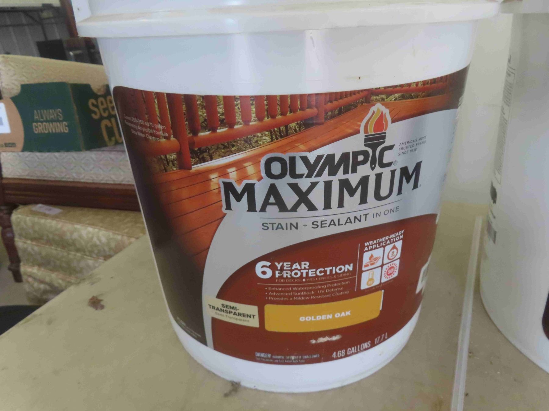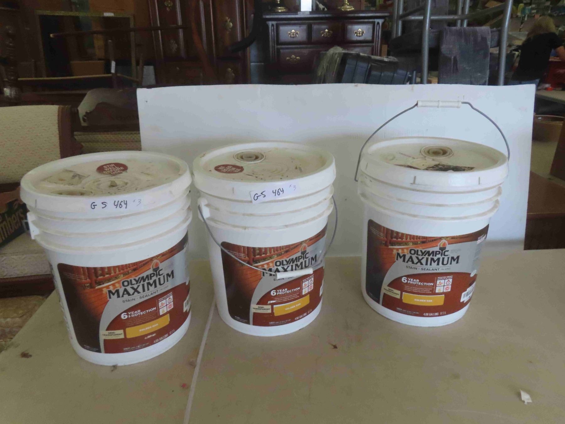 (3) 5 gal Olympia Deck Stain, Golden Seal