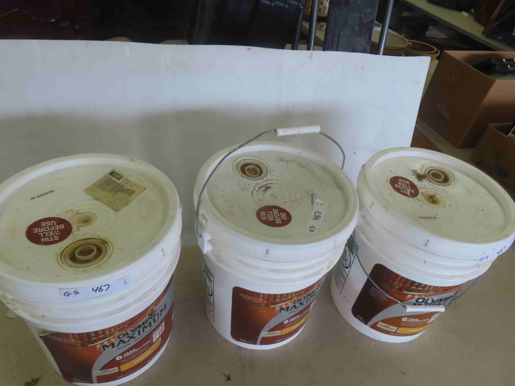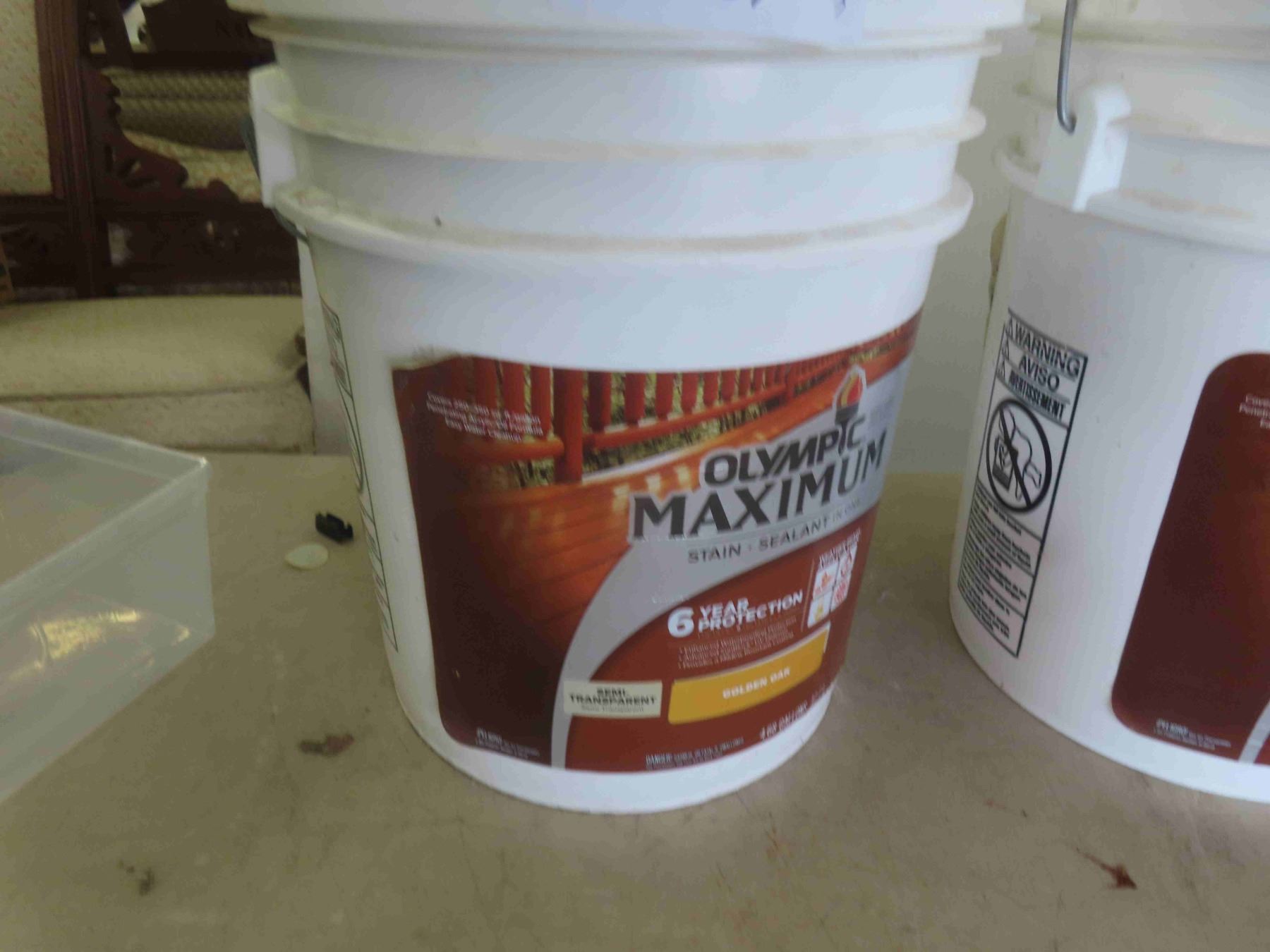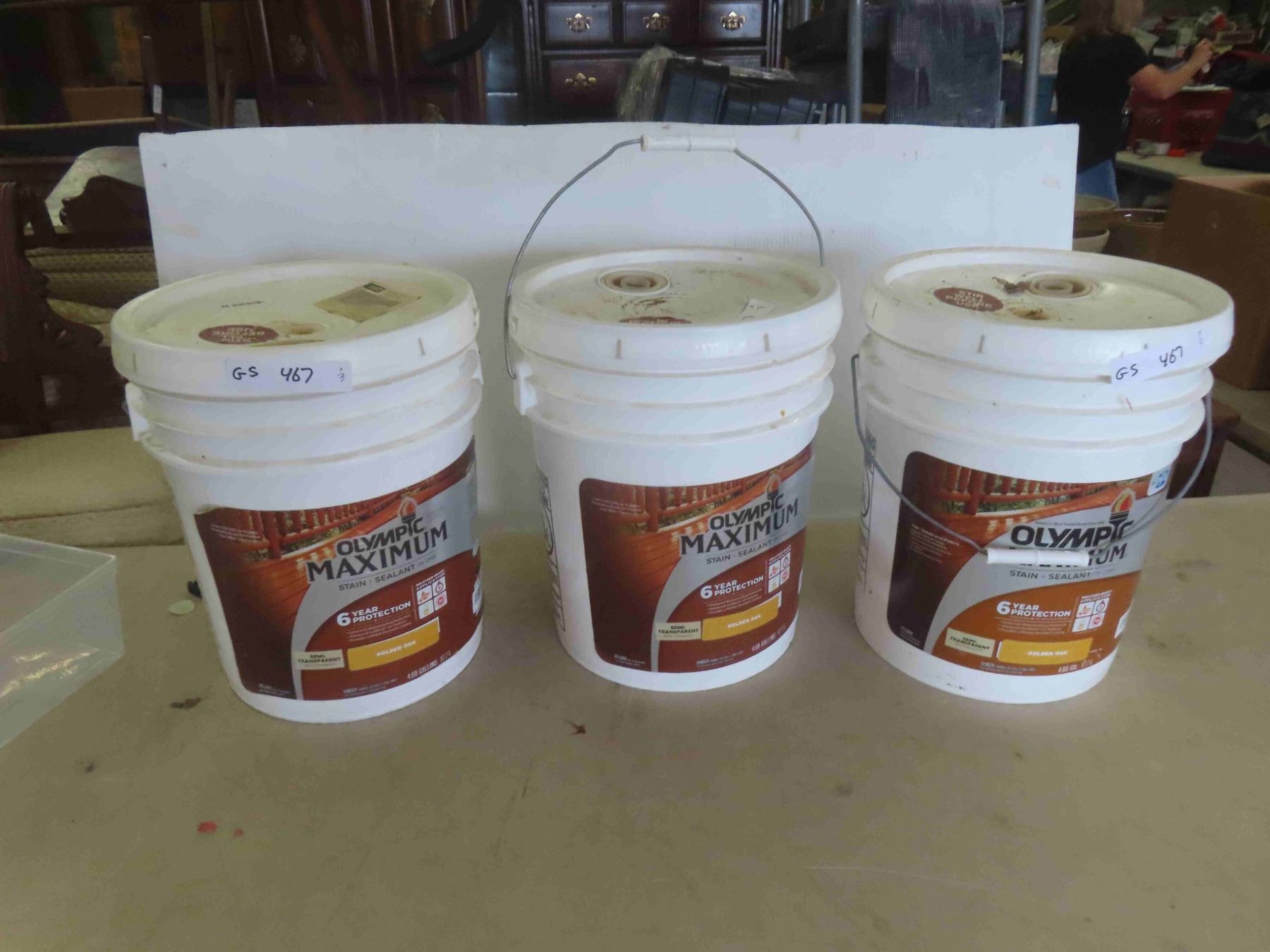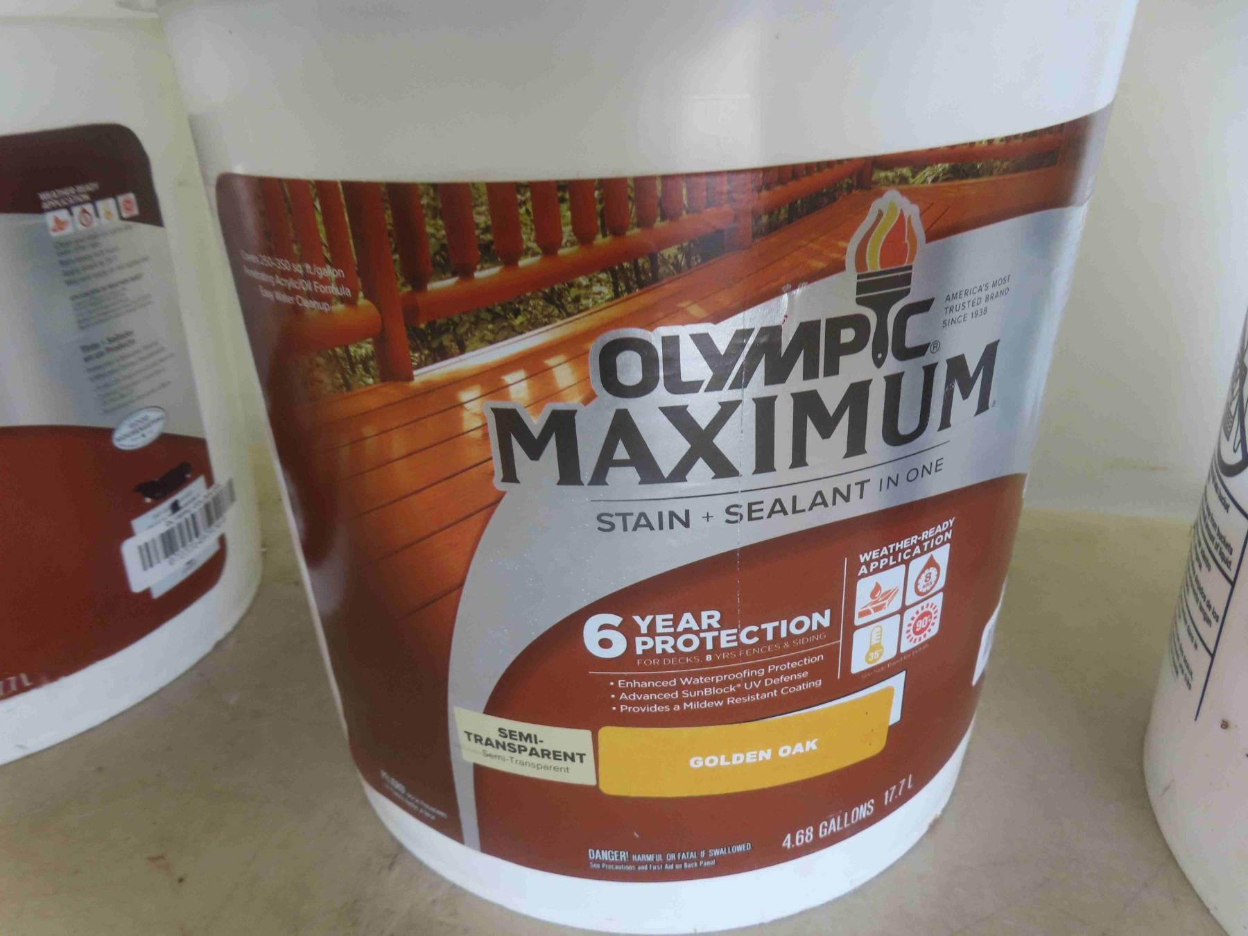 (3) 5gal Olympia Deck Stain, Golden Seal.
