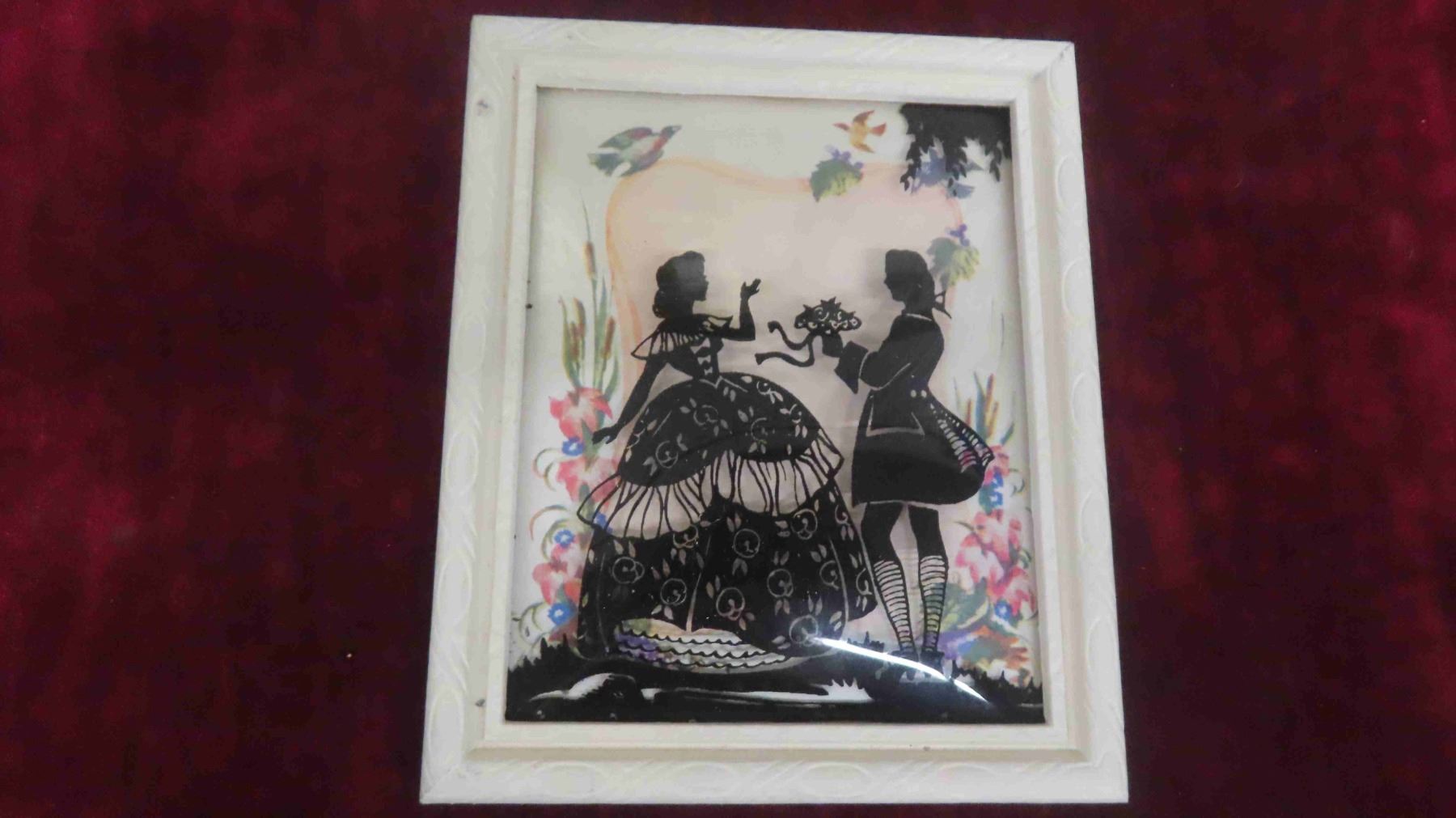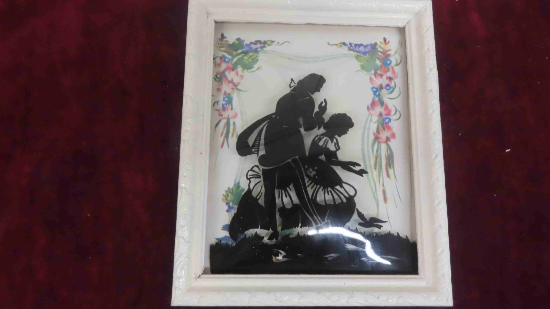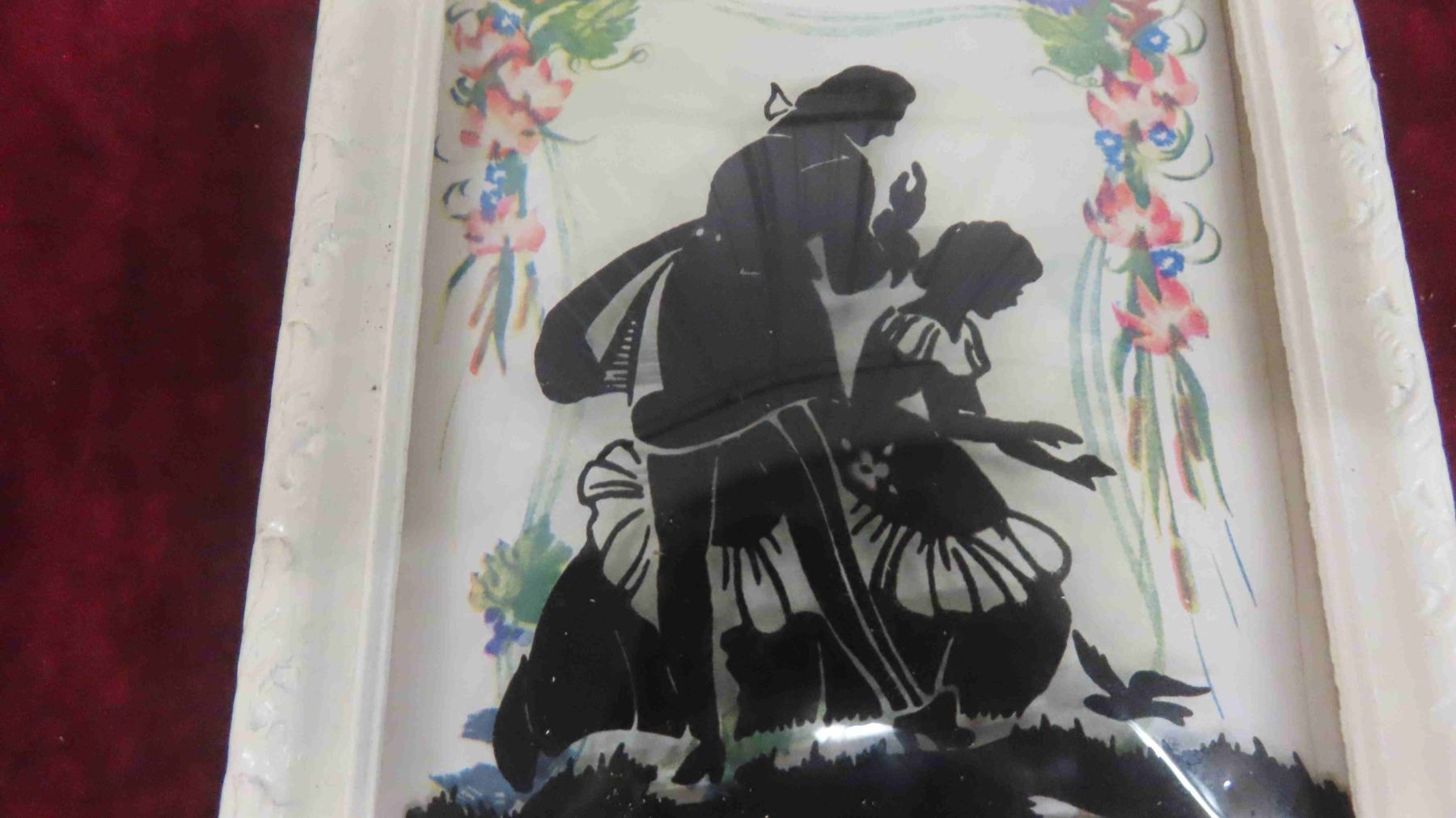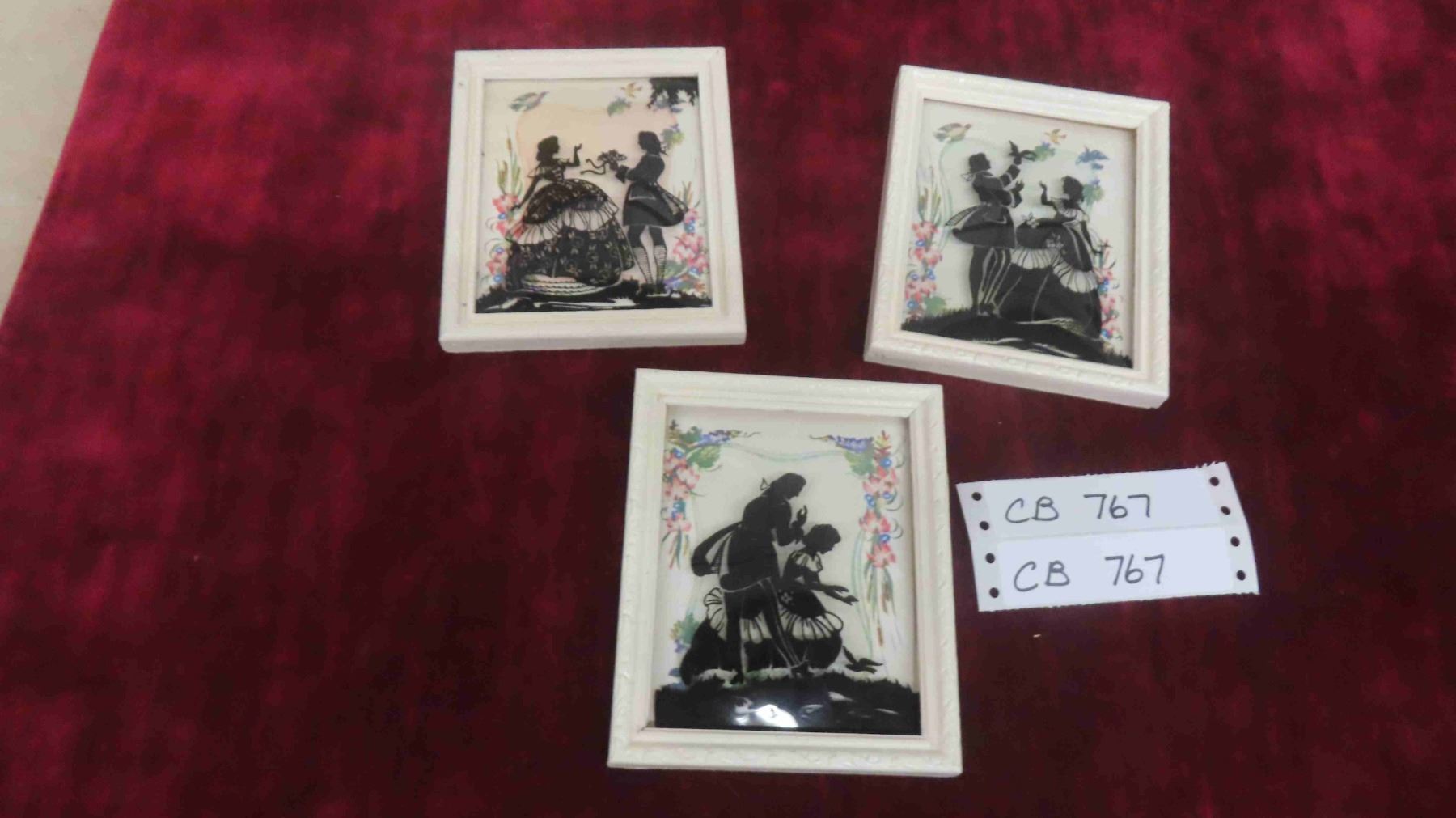 3 Antique Pictures with Convexed Glass and Painted Silhouette 4 3/4'' x 5 3/4''